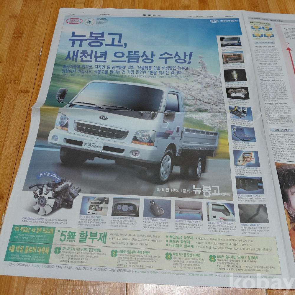 기아자동차 뉴봉고 퓨런티어 광고 세계일보 2001년 4월25일 올려드립니다