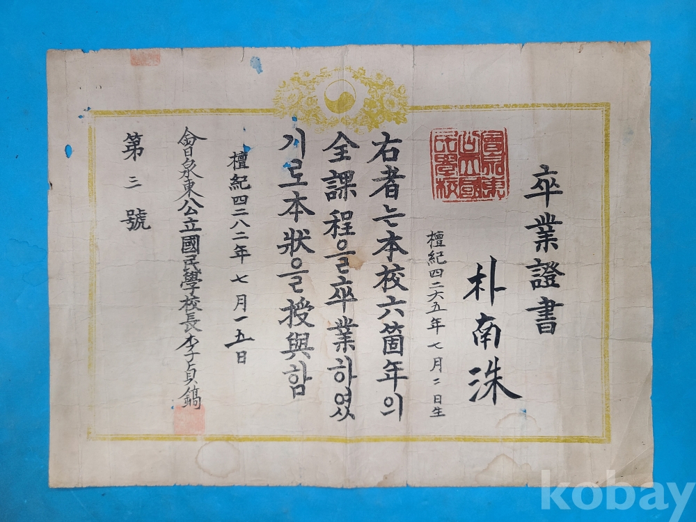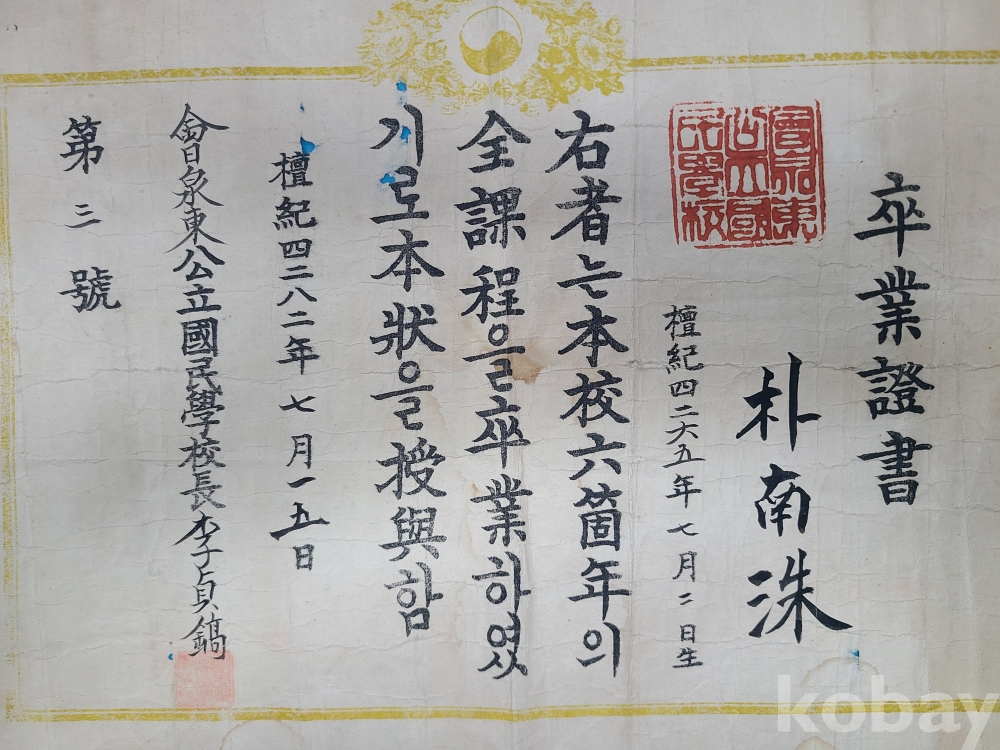 ▶1949년 會泉東公立國民學校 졸업증서