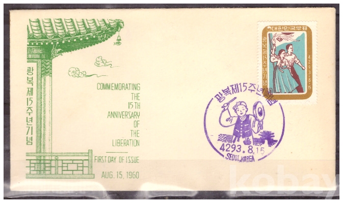(초일봉피) 1960.8.15 광복 제15주년 기념 FDC (SEOUL,KOREA 4293.8.15)
