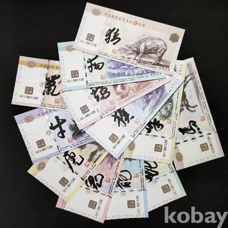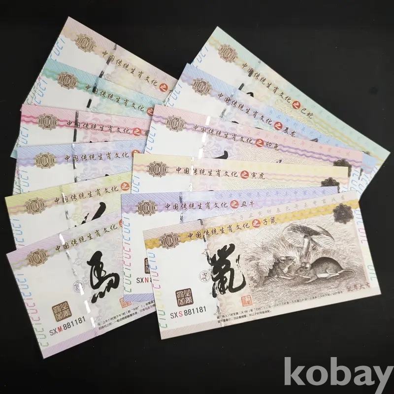 사진이미지와 같이 중국의 사자상 행운의 기념증서 12종세트 이며