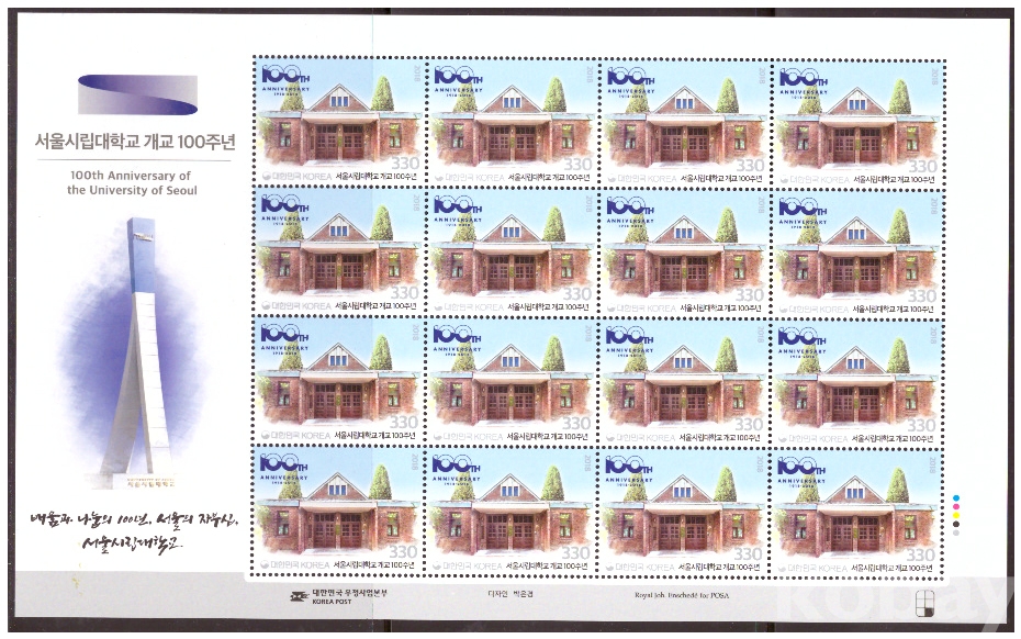 (한국전지) 2018.4.2 서울시립대학교 개교 100주년 sheet of 16 MNH