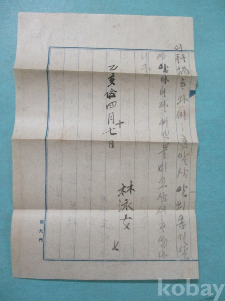소화 10년인 1935년 을해년 음력 4월7일에 양식지에 쓰인 국,한 혼용의 간찰