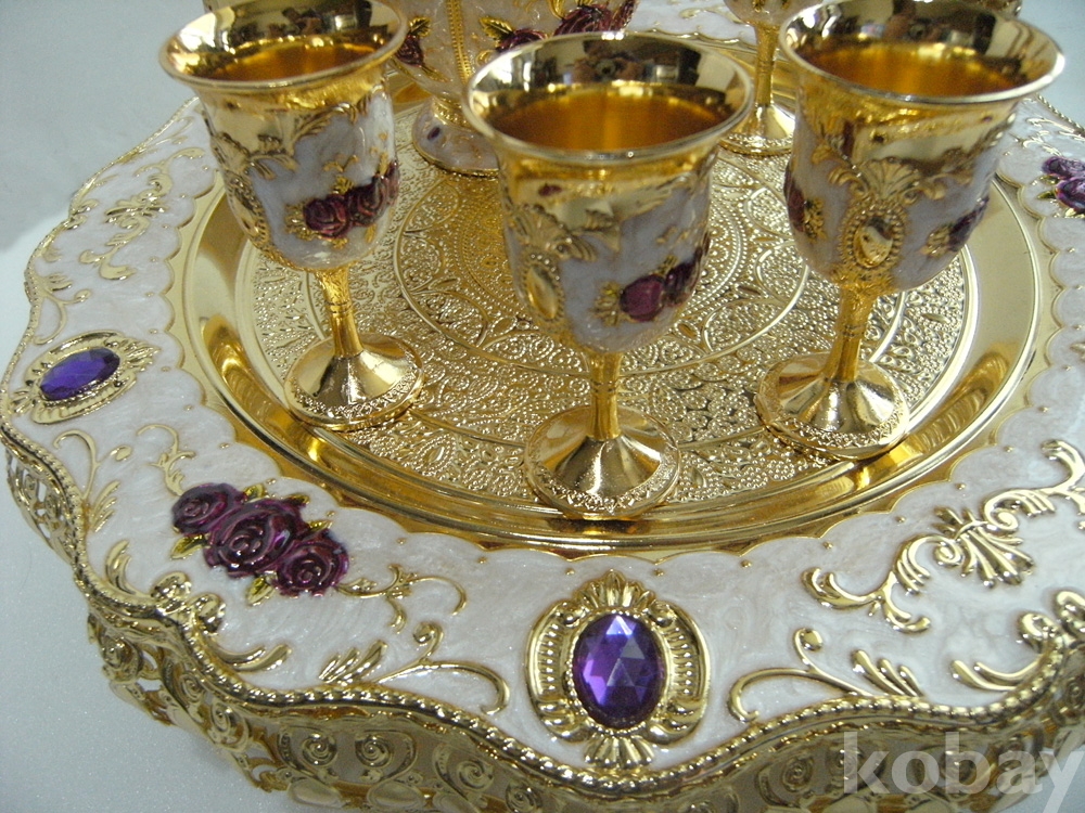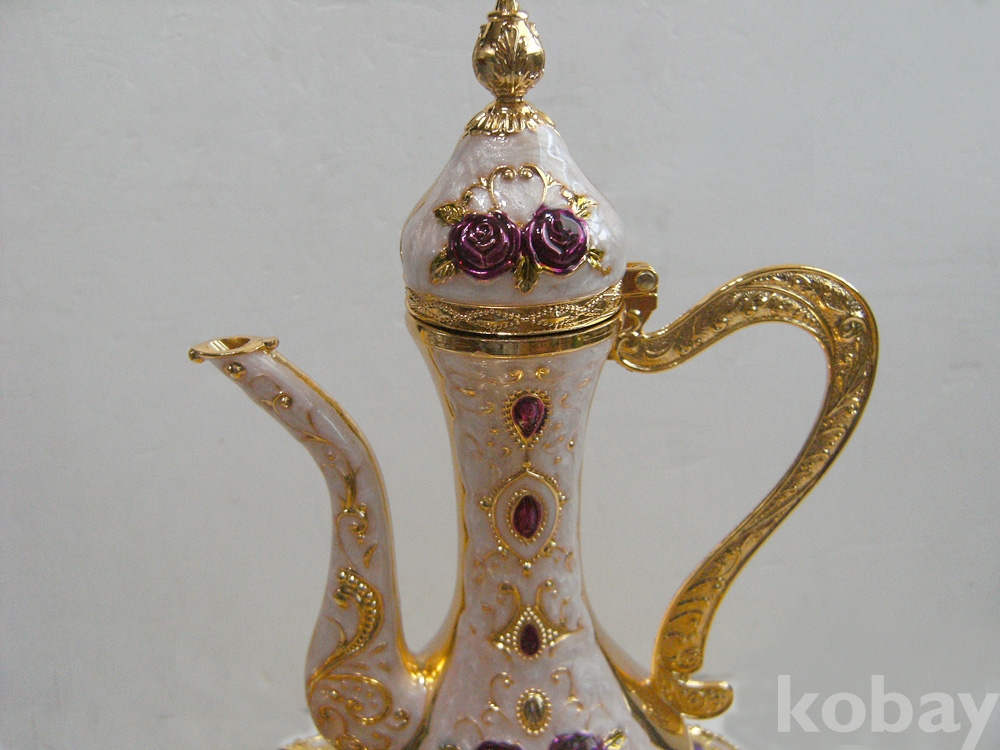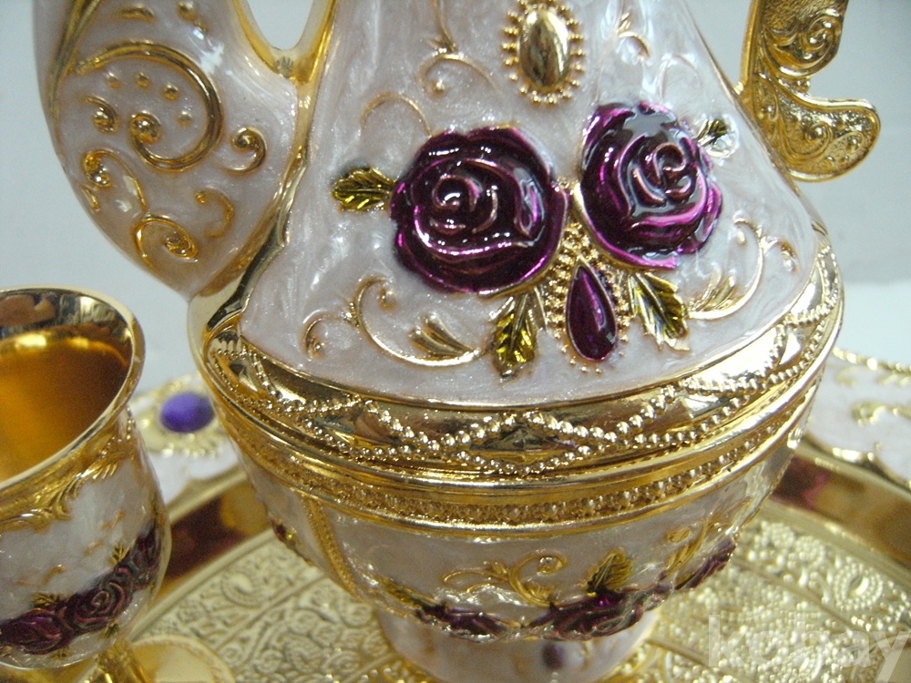 금속재질위에 칠보를 입혀만든 장식용 주전자와 잔셋트 입니다.