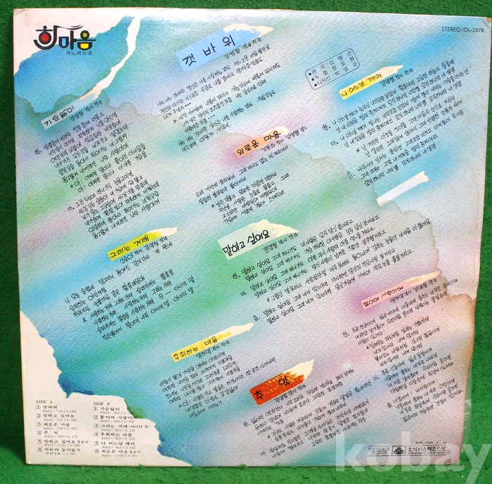 (LP) 한마음 - 갯바위 / 가슴 앓이 / 말하고 싶어요...