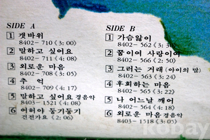 수록 곡 목은 사진을 참조하시기 바랍니다