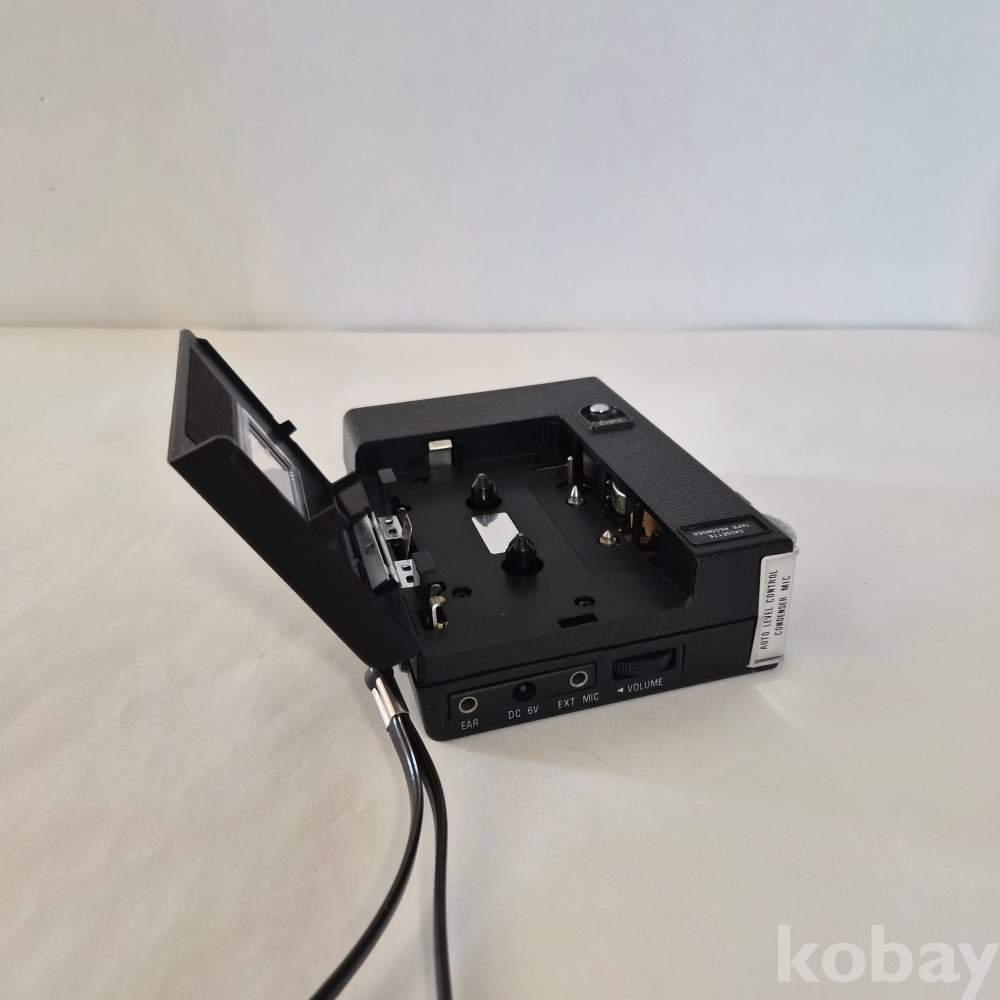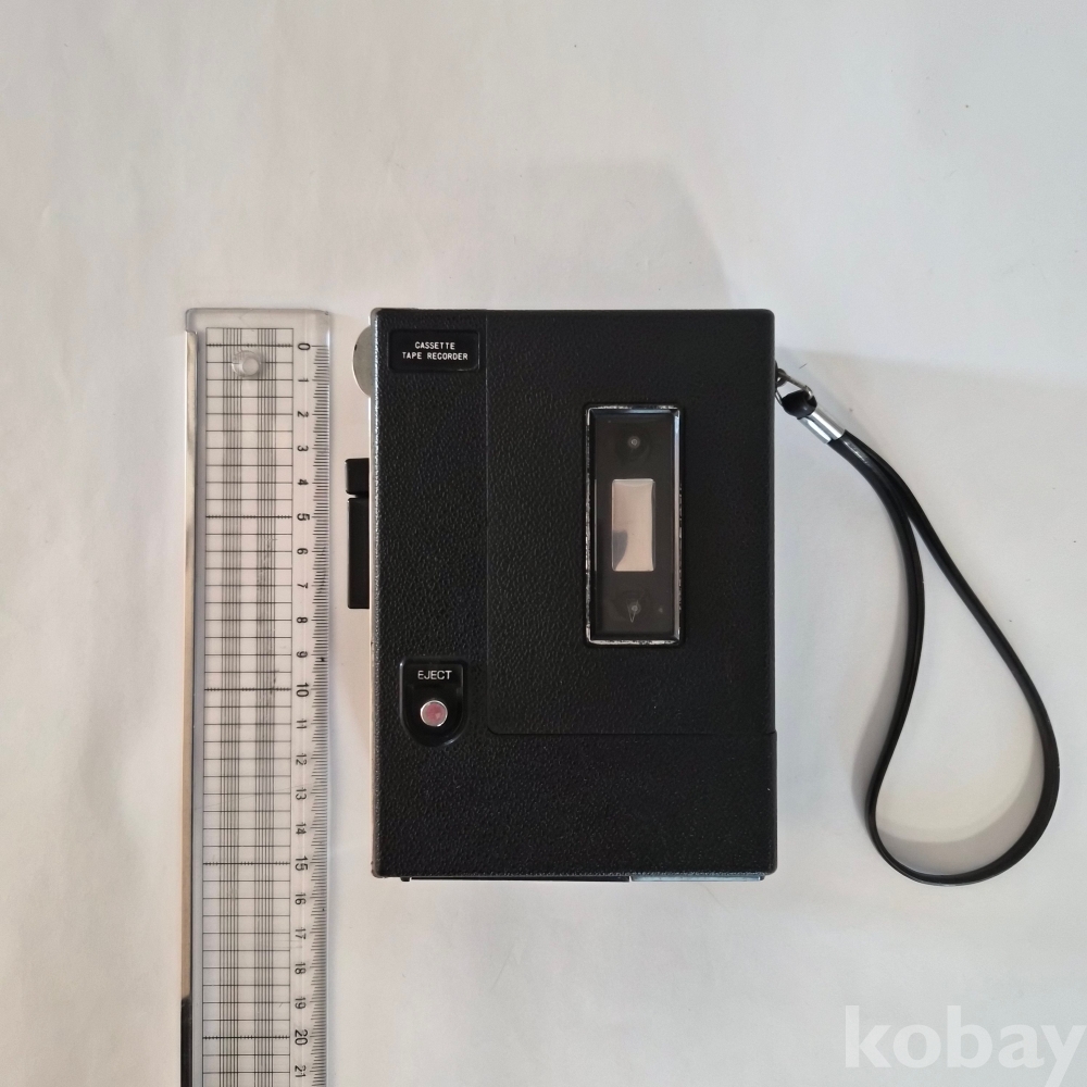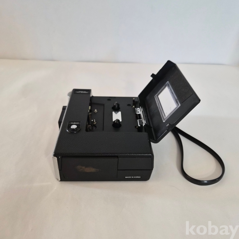 메탈 재질로 견고하게 제작된 미니 카세트 초기모델로 무거운 편이며 미세한 세월감 외