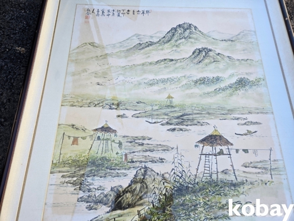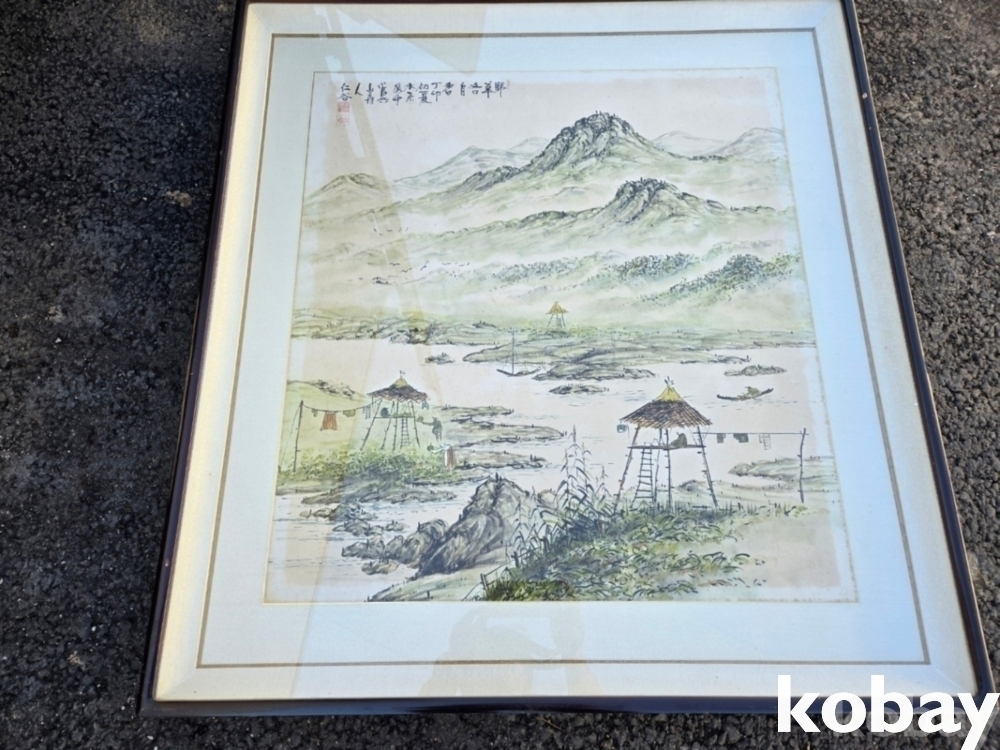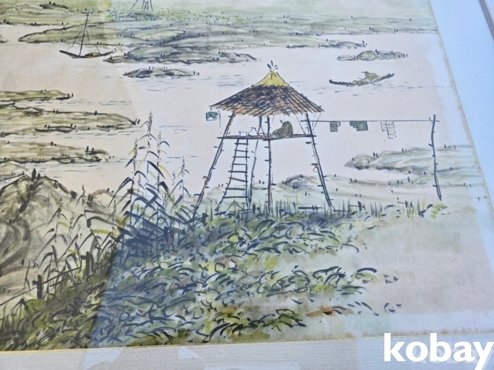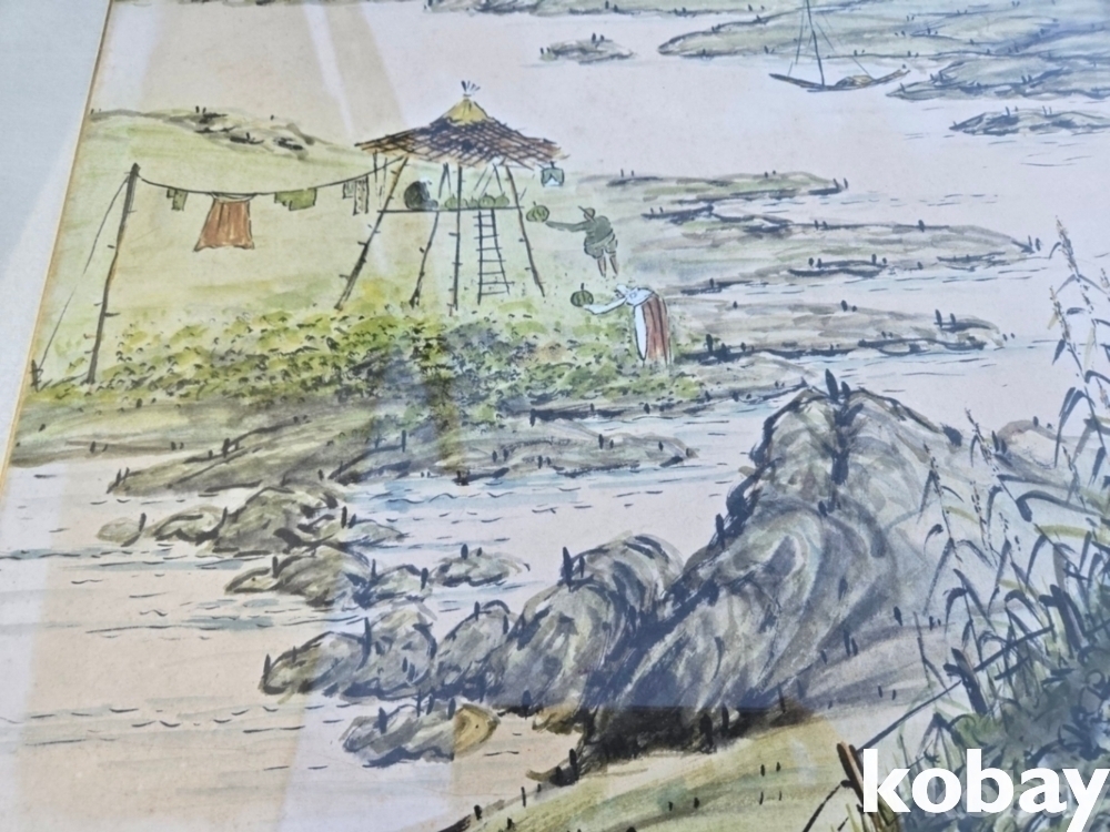 강가의 원두막 풍경 그림 액자 입니다.