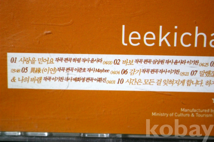 수록 곡 목은 사진을 참조하시기 바랍니다