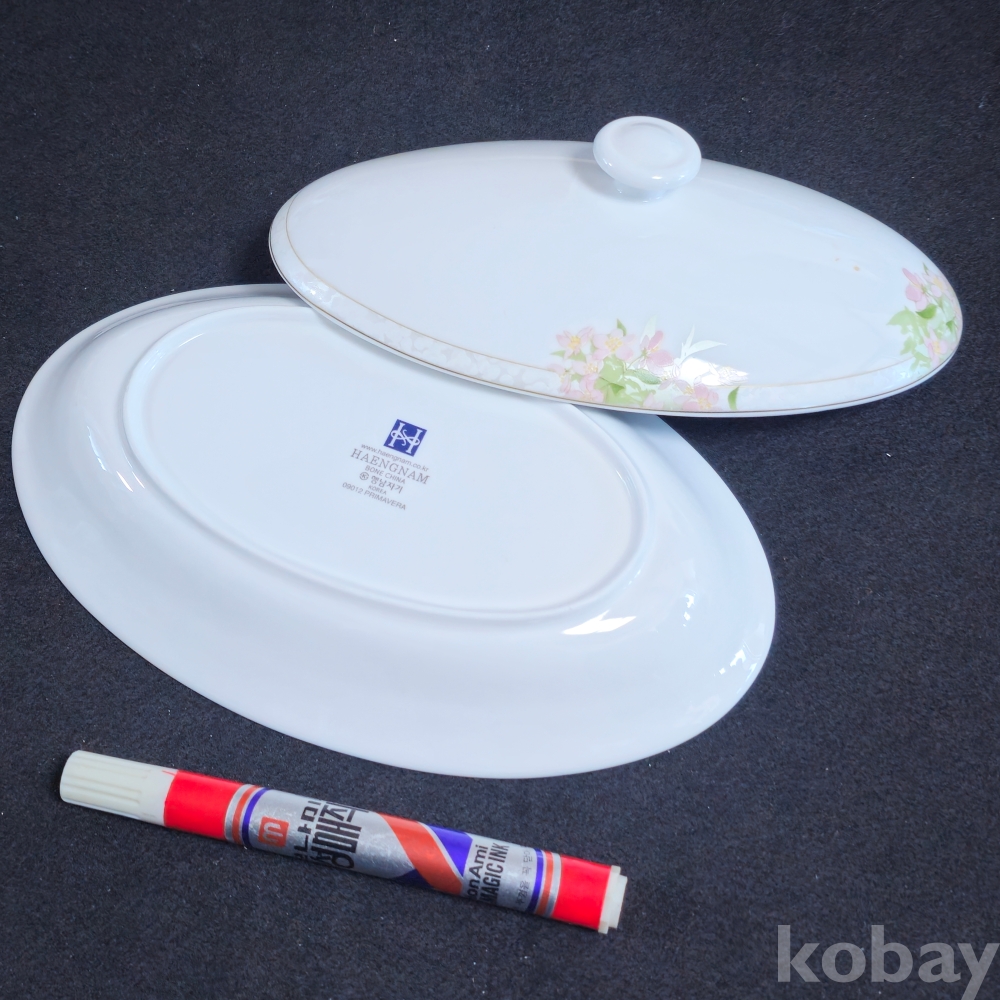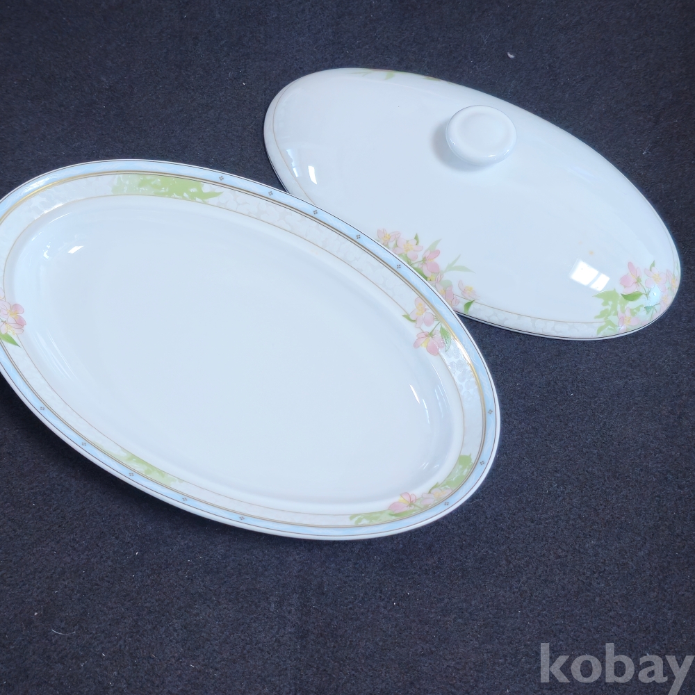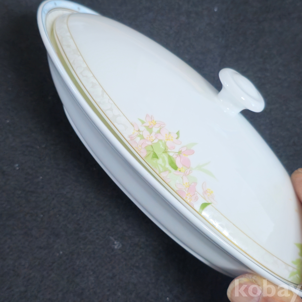 (((도자기식기))) 오래전 꽃문양이 이쁜 도자기 타원형 뚜껑 볼 (행남자기)
