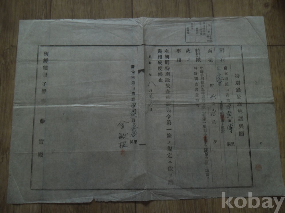 소화2년 특별연고 삼림양여원(산청군)