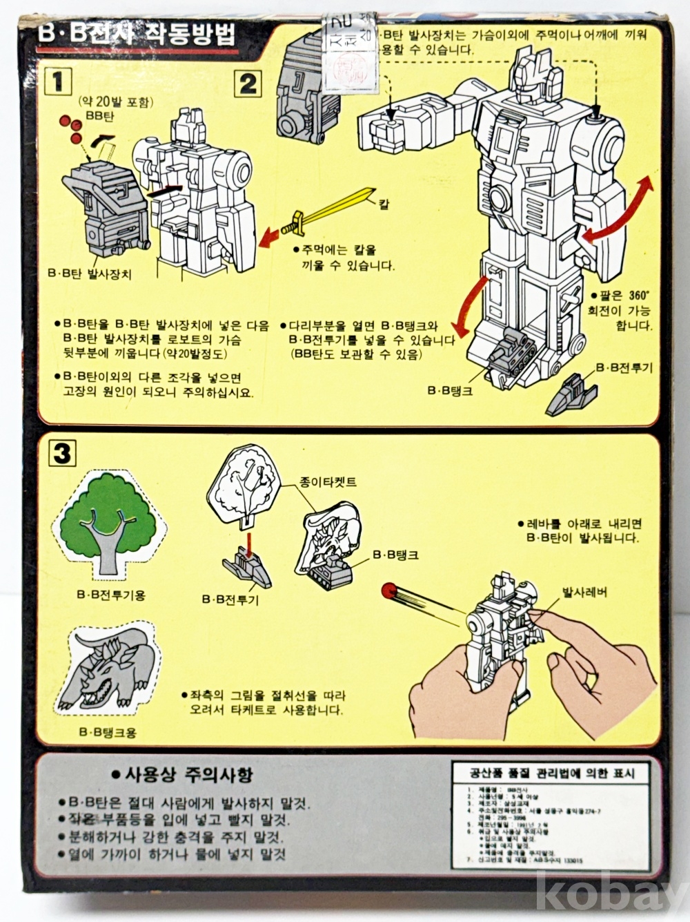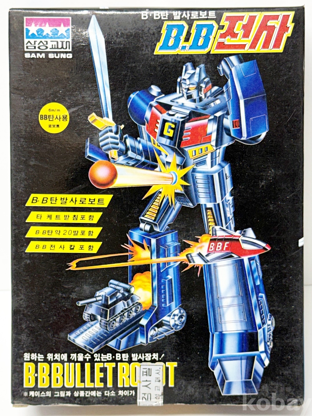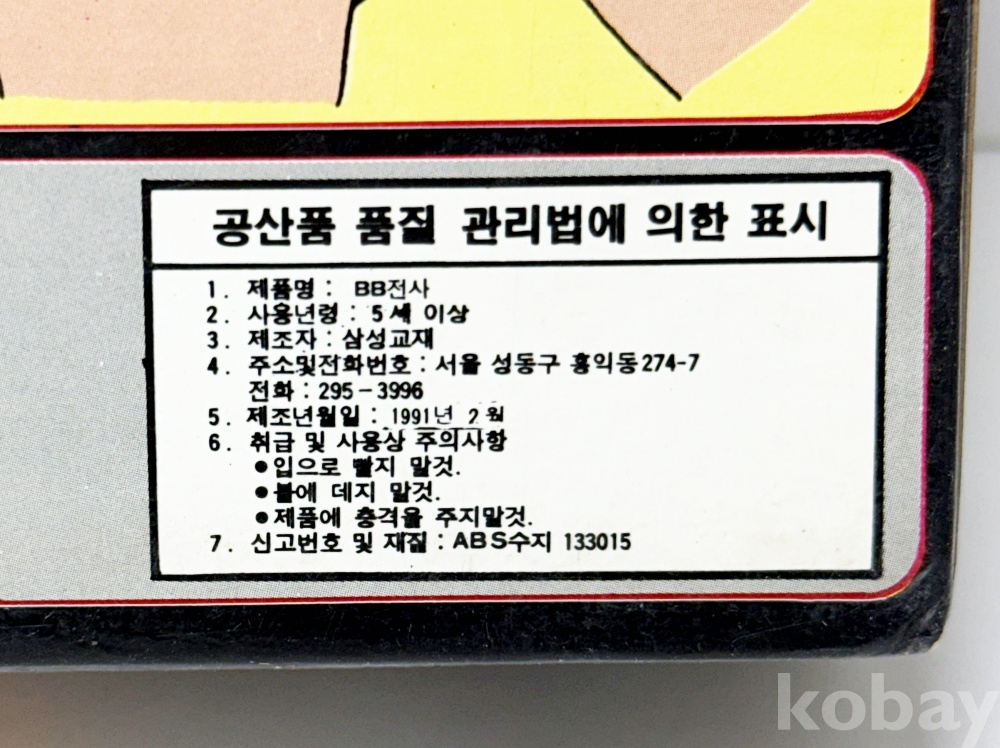상품설명 | 1991년 삼성교재에서 제작한 'B.B 전사'이다. 6mm 비비탄을 발사할 수 있는 기능이 있다. | ||