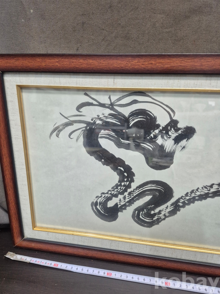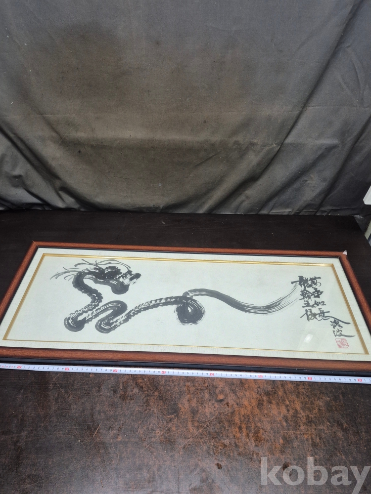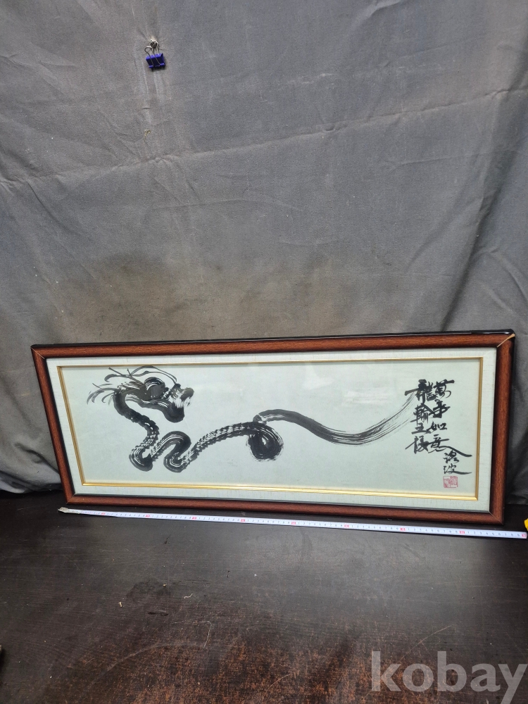 1980년대 한국화 승천하는 용을 그려놓고 만사여의 : 모든일이 뜻하는 대로 된다 라고 글귀를 남긴 작품 그림 87*36*3