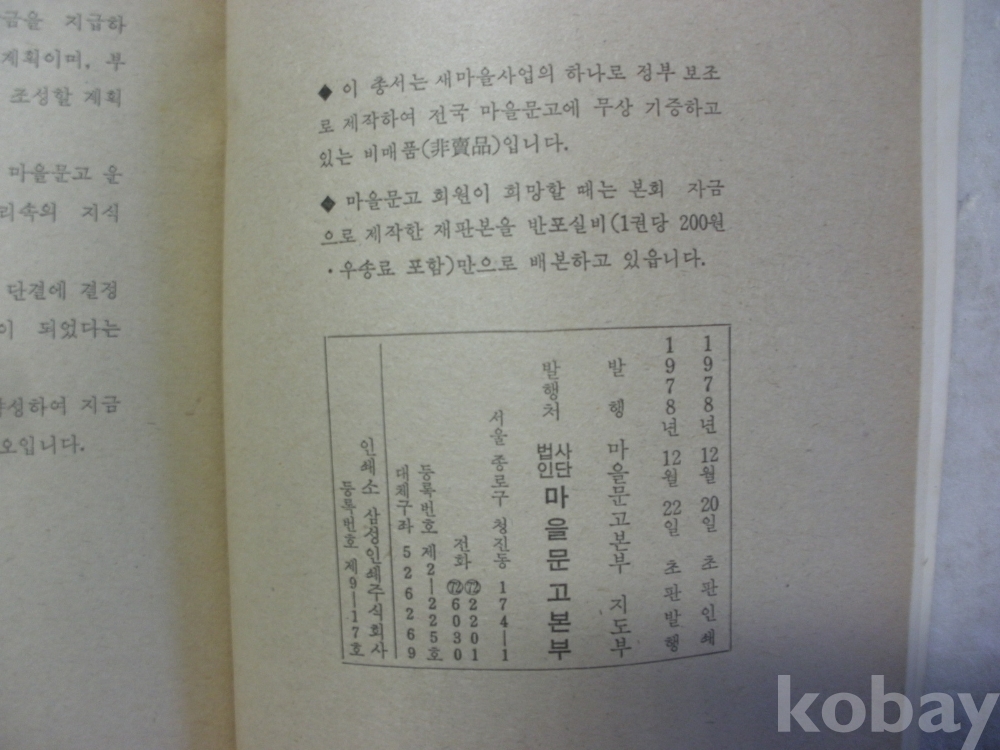 마을문고 운영과 활동사례 (1978년, 마을문고본부)
