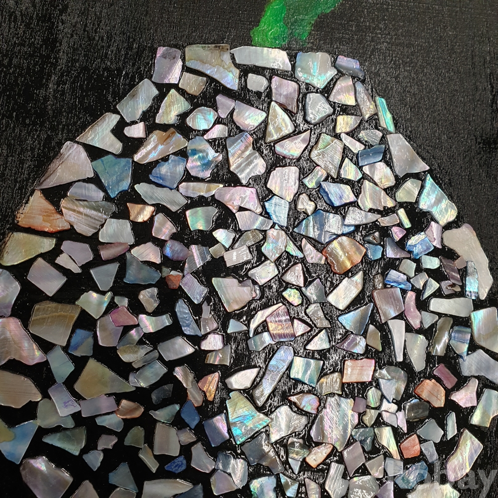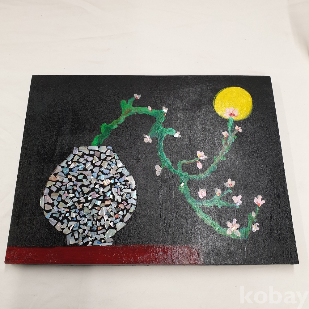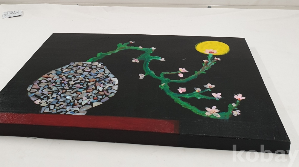 [*천원행복*] S - 3 - 1019 달항아리 모양이 자개로 장식 된 캔버스 아트 작품 (40*30)