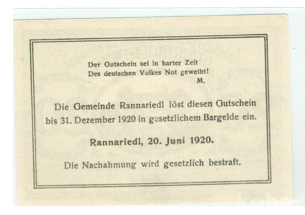 이름: 1920년 오스트리아 라나리들 노트갤트(비상화폐) 20헬러