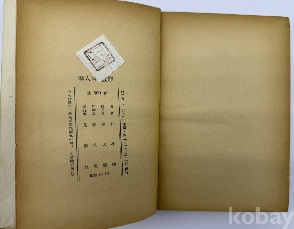 물 품 명 | <좋-았書! 2탄> [37] 1958년 발행, 박두진 시집 [시인의 고향] 초판본 1책 | |||||