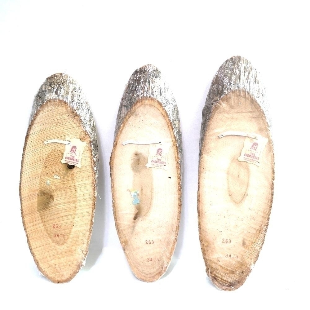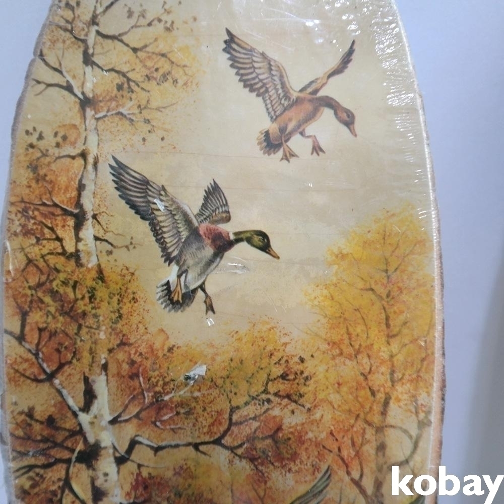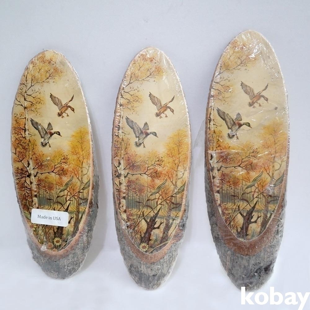 통나무 판위에 새그림이 전사되어져있는 오래된 소품 2점 입니다.