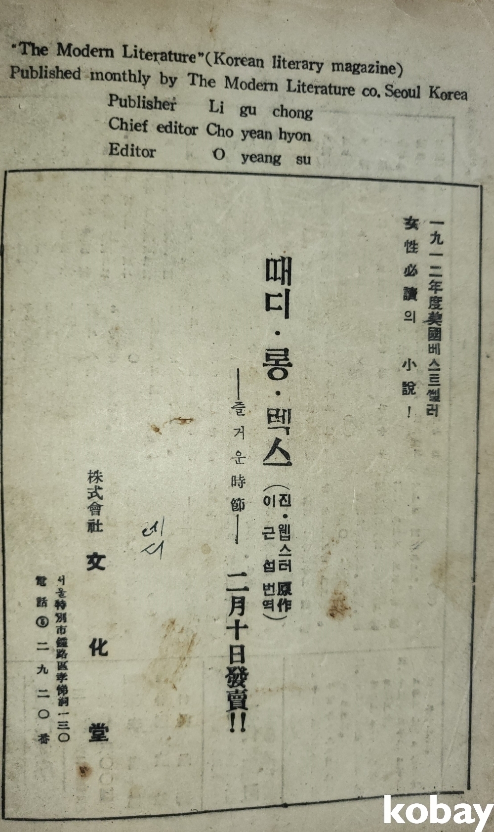 66년전에 발행된 월간지로 희소가치 좋읍니다,
