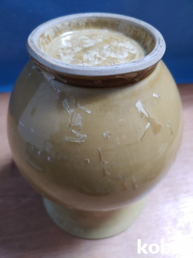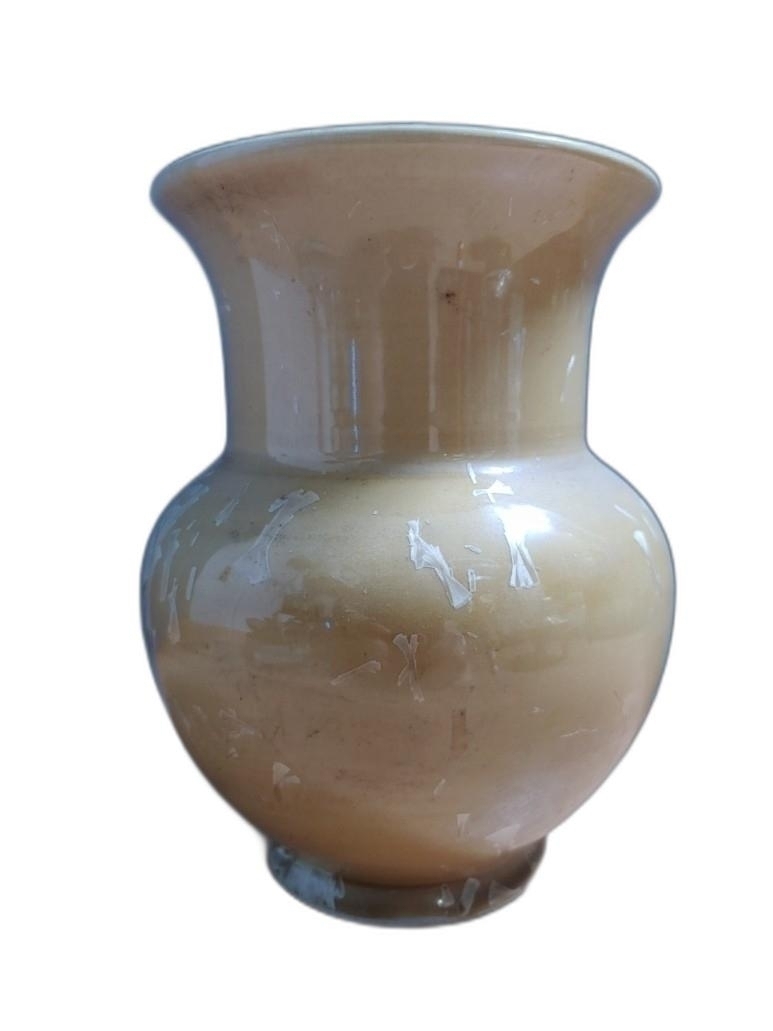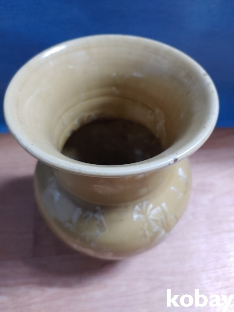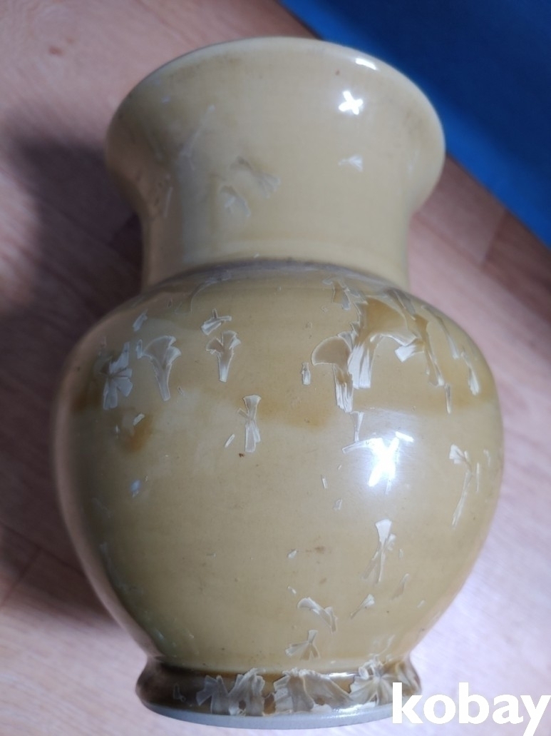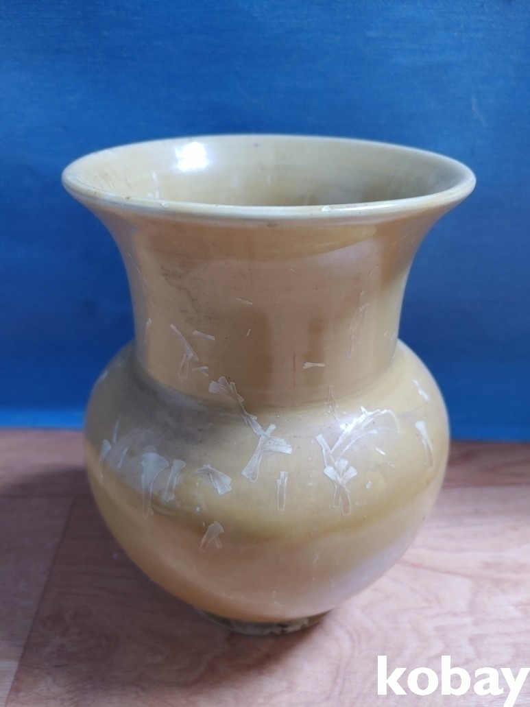 반짝이는 무늬가 있는 입이 큰 도자기 입니다.