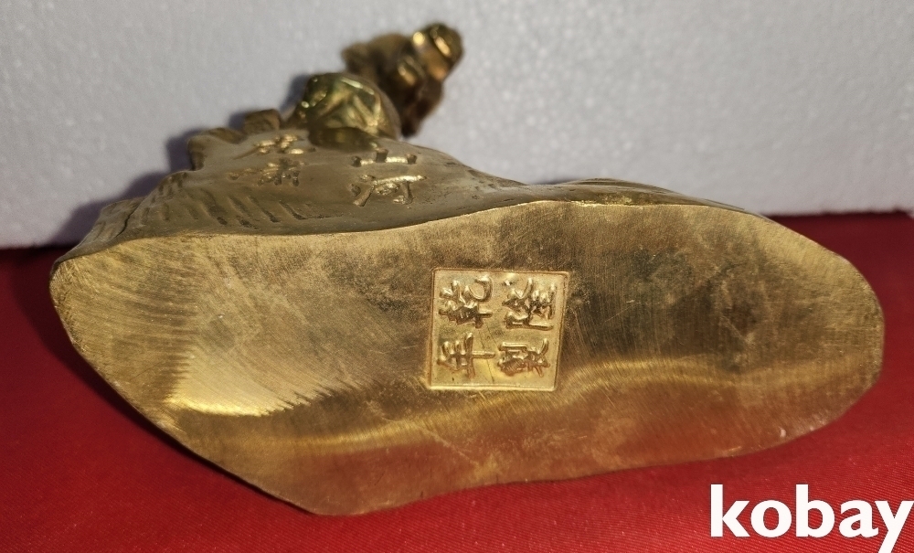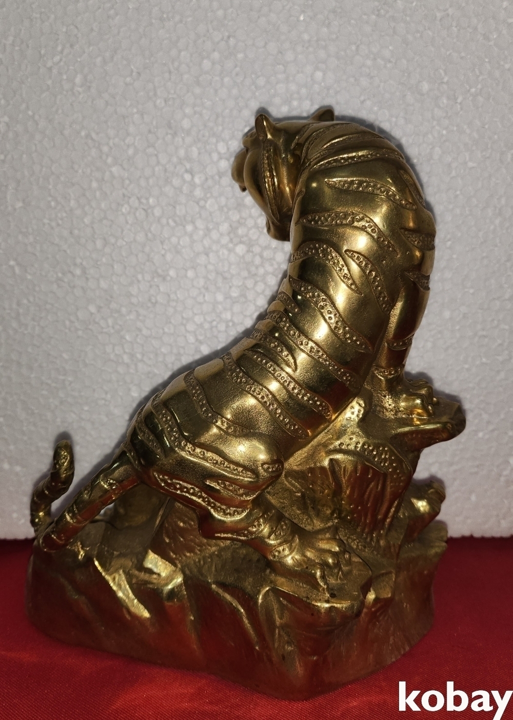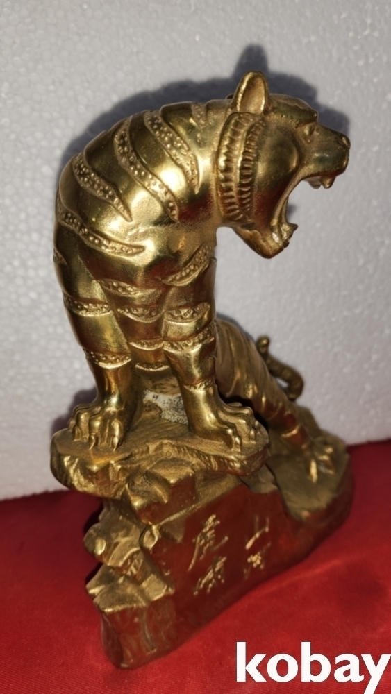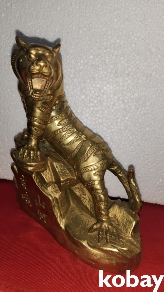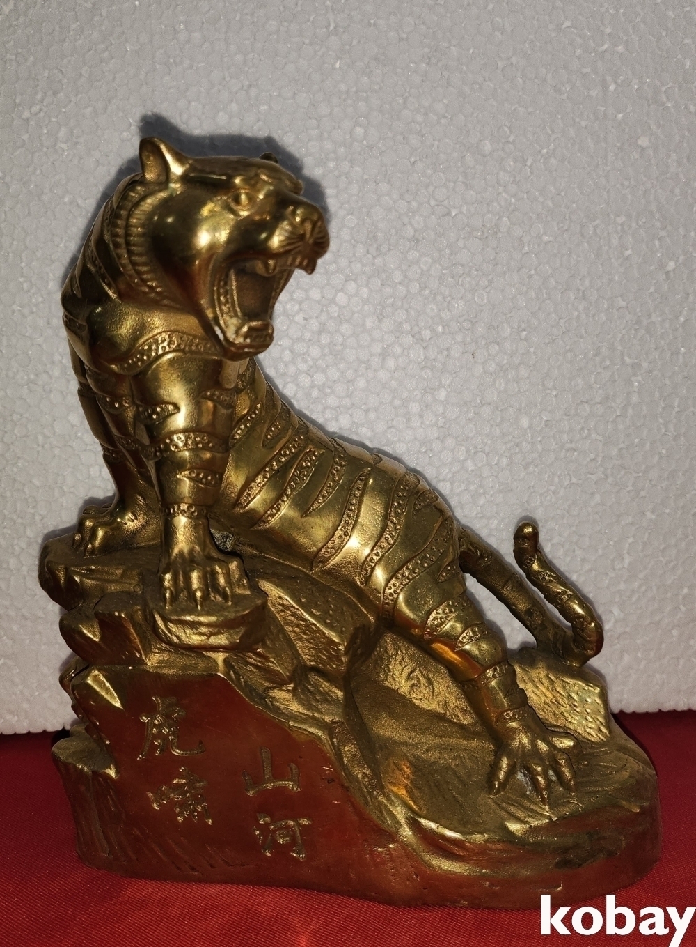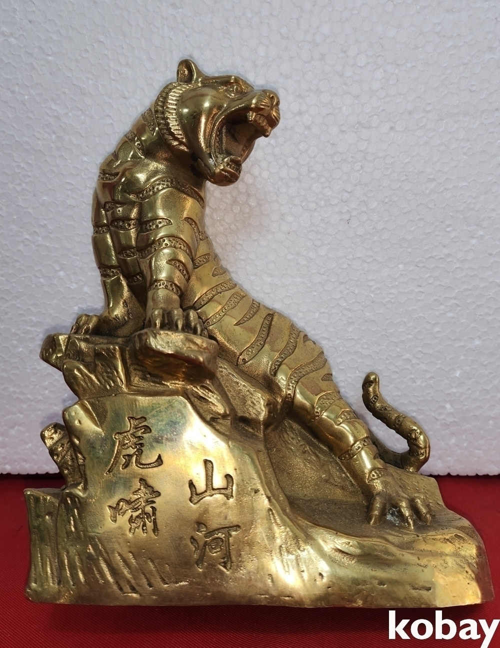 건륭연제(乾隆年製) 관지 산하호소(山河虎嘯) 황동 괴석에서 표호하는 호랑이 상입니다,