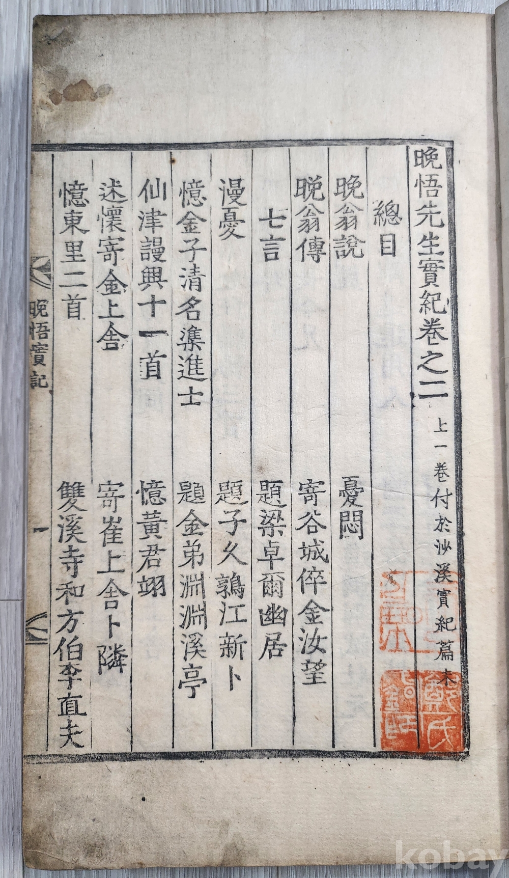 만오선생실기 목활자본(소장가낙관있음) 2편 1책입니다 표지에보면 당대에 단권으로 쓰여있습니다 첫페이지에(상1 부어사계실기편) 쓰여있습니다 사진 참조바랍니다