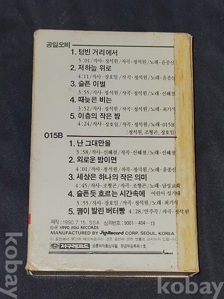 빈티지 세월 감이 느껴지는 1990년 공일오비(015B) 카세트테이프(텅빈 거리에서/난 그대만을)입니다.