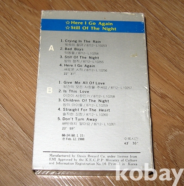 하드록 / 화이트 스네이크 Whitesnake – 1987 카세트 테이프.