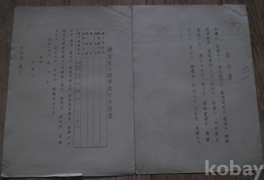 1960년대 광업착수유예인가신청서/사유서