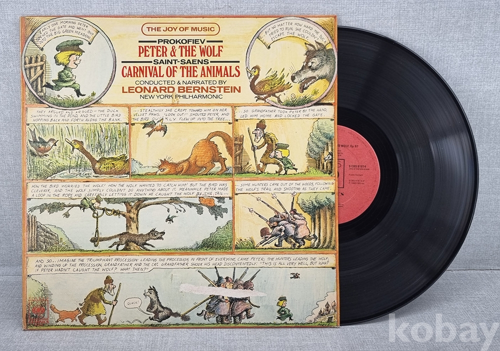 희소성 있는 일러스트 자켓: 전면 자켓이 '피터와 늑대'의 줄거리를 만화 형식(Comic Strip)으로 그려내어 시각적으로 매우 매력적이며 수집 가치가 높습니다.