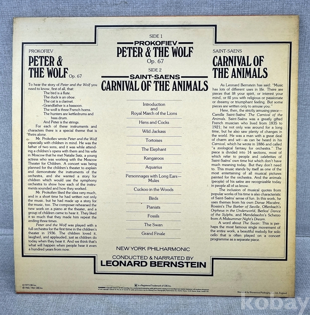 번스타인의 친절한 해설: 전설적인 지휘자 레너드 번스타인이 직접 내레이션을 맡아 음악의 구조와 악기 구성을 설명해 줍니다. 교육용으로 가치가 매우 높습니다.