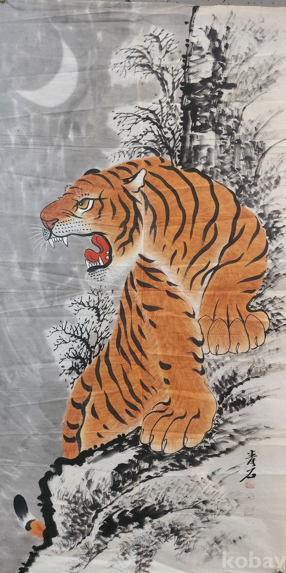 화가 청석(靑石) 作 과석과 호랑이 그림입니다,