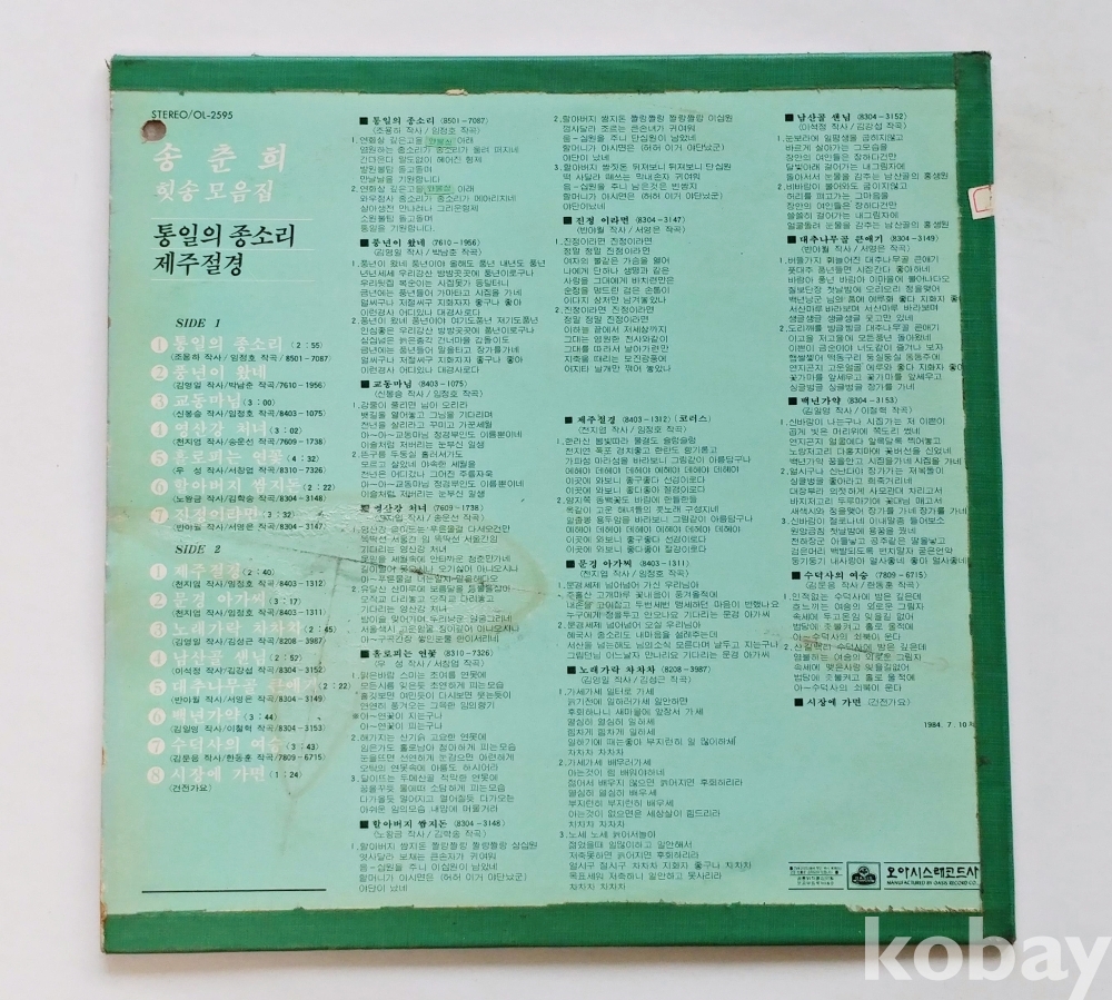 EX : 약간의 마모, 모서리 찢김 존재 음반상태