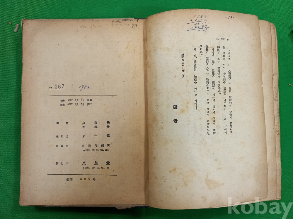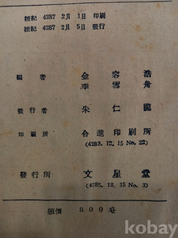 이 책은 1954년에 문성당(文星堂)에서 발행된 『현대시인선집(現代詩人選集)』 상권, 하권 입니다.