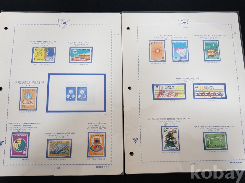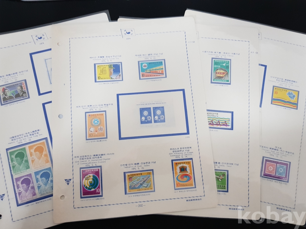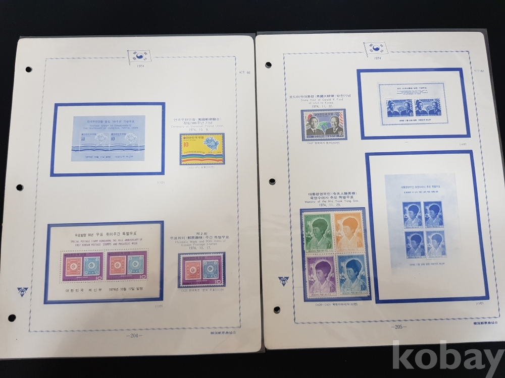 - 1974년 기념우표 4판 모음 / 앨범해체분