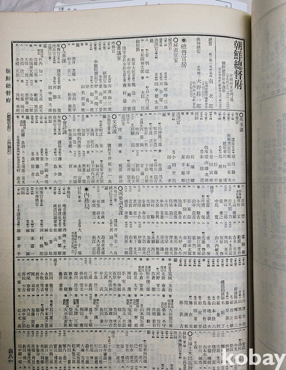 조선 총독부 직원명단 481--640p