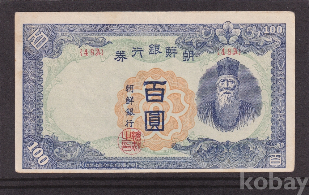 - 조선은행 1947년 무백원 판번호 48A 극미 지폐