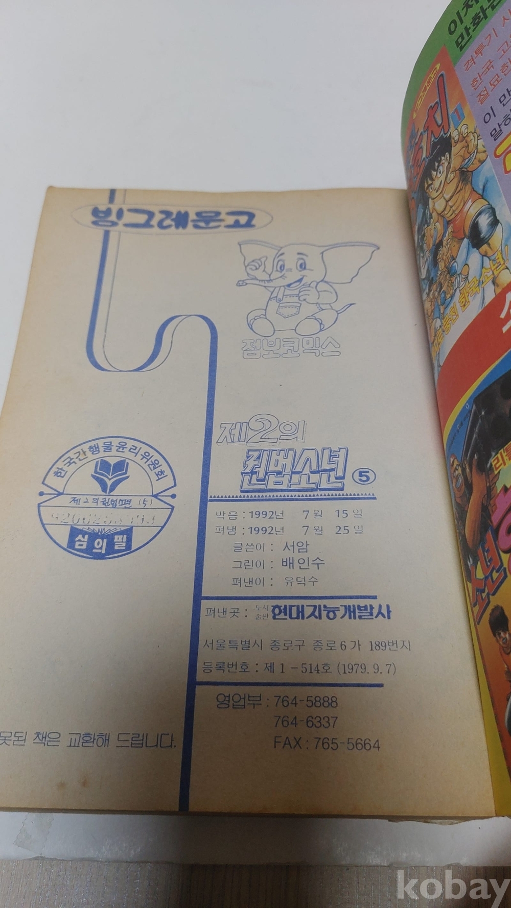 예전 빙그레문고 제2의 권법소년5 만화책 입니다