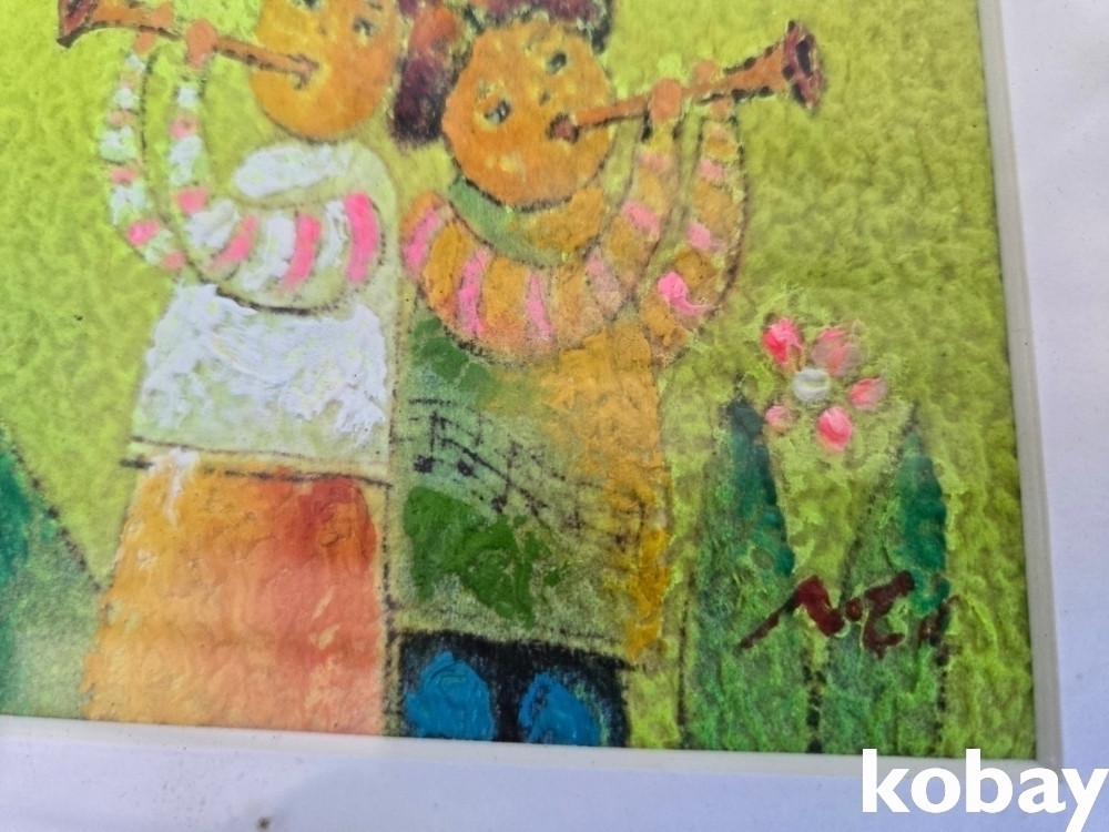 나팔 부는 아이들 표현 유화 액자 입니다.