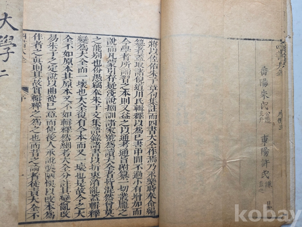 대학과 중용부분 완질이며 논어나 맹자는 없습니다.