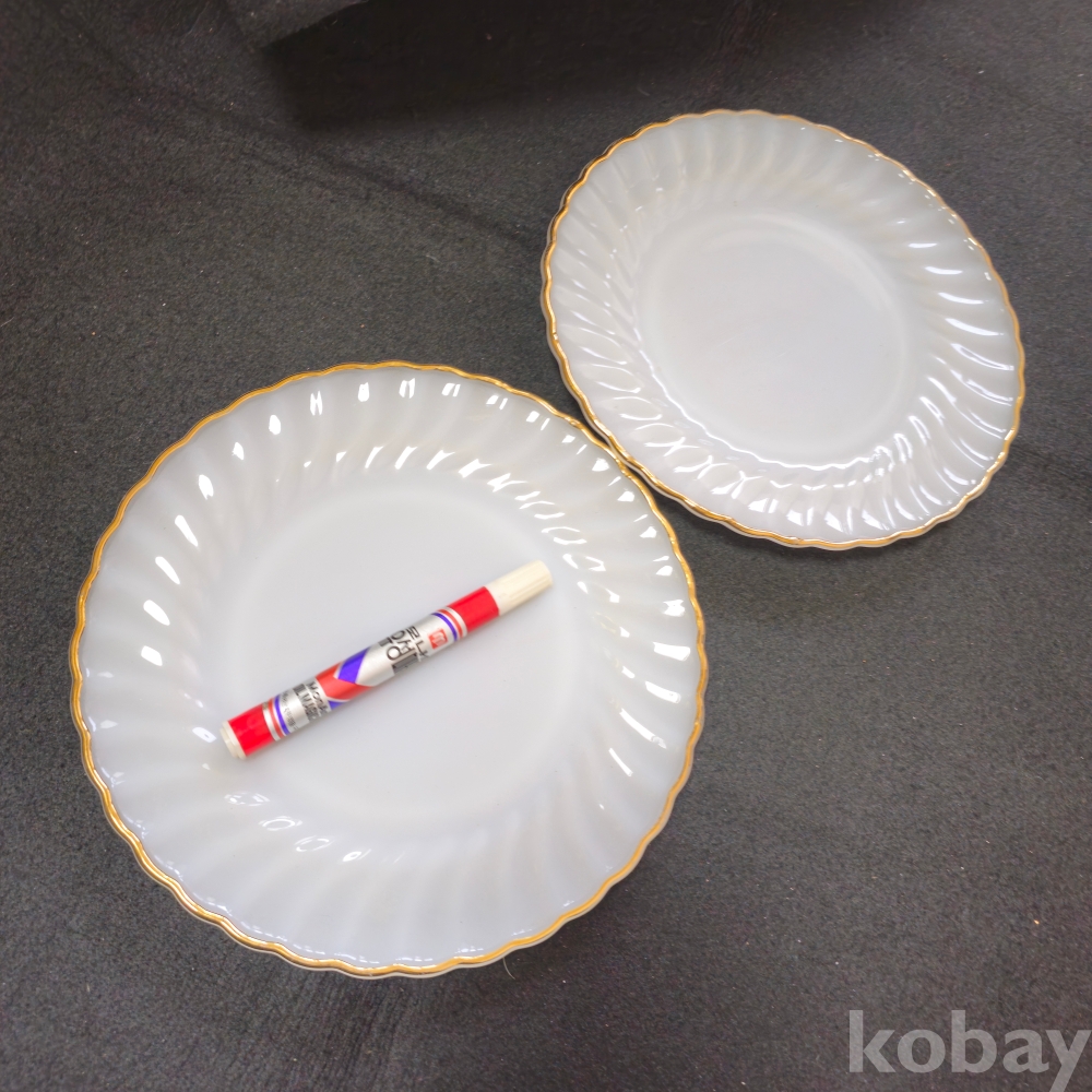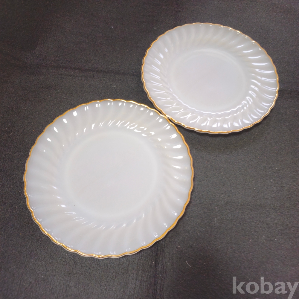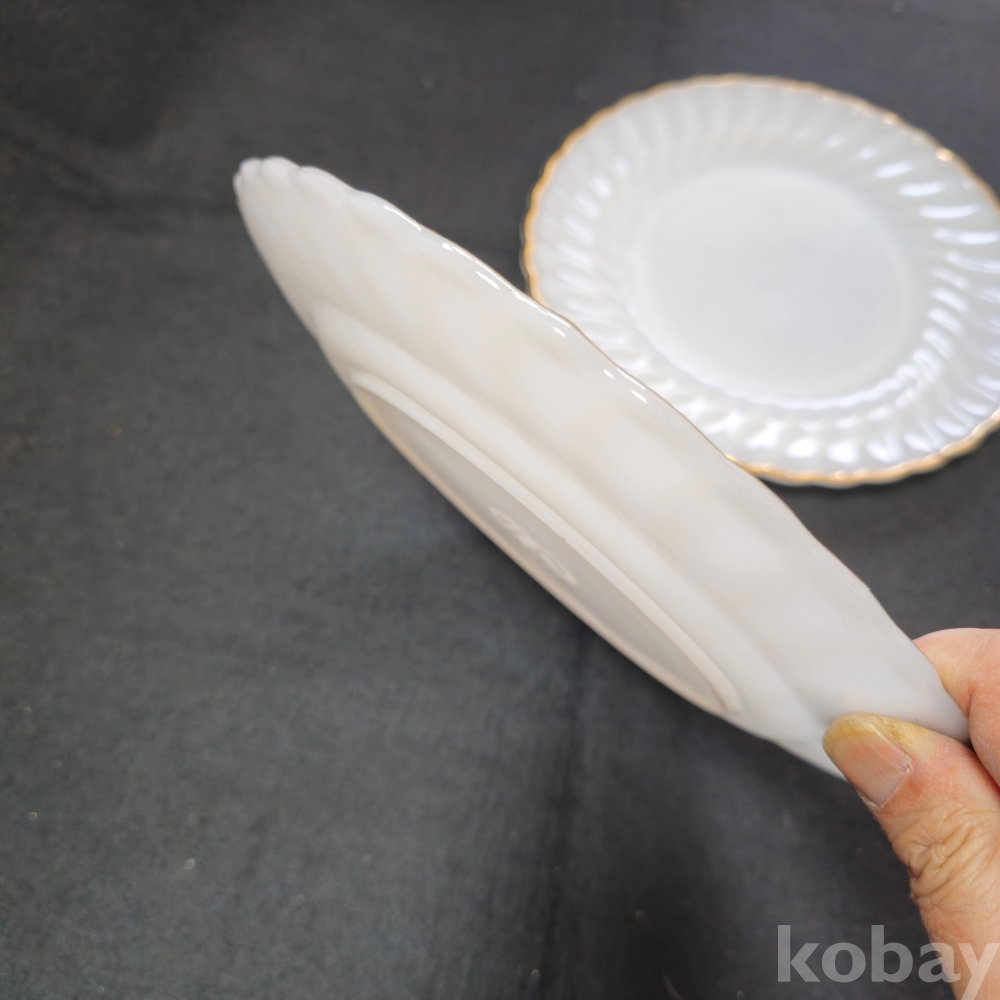 (((빈티지접시))) 오래전 미국에서만든 비교적 큼지막한 ANCHOR HOCKING (앵커호킹) 빈티지 밀크 접시 2개 (지름 25 cm)
