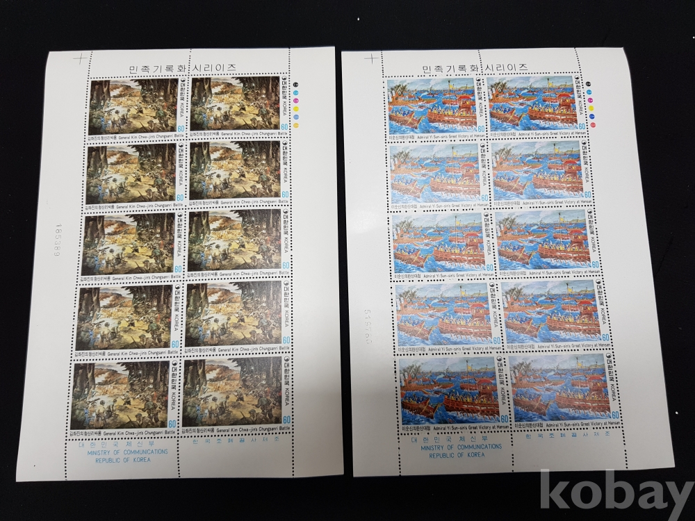 - 미사용 1982년 민족기록화시리즈 - 제 3집 전지 2종 4매 모음