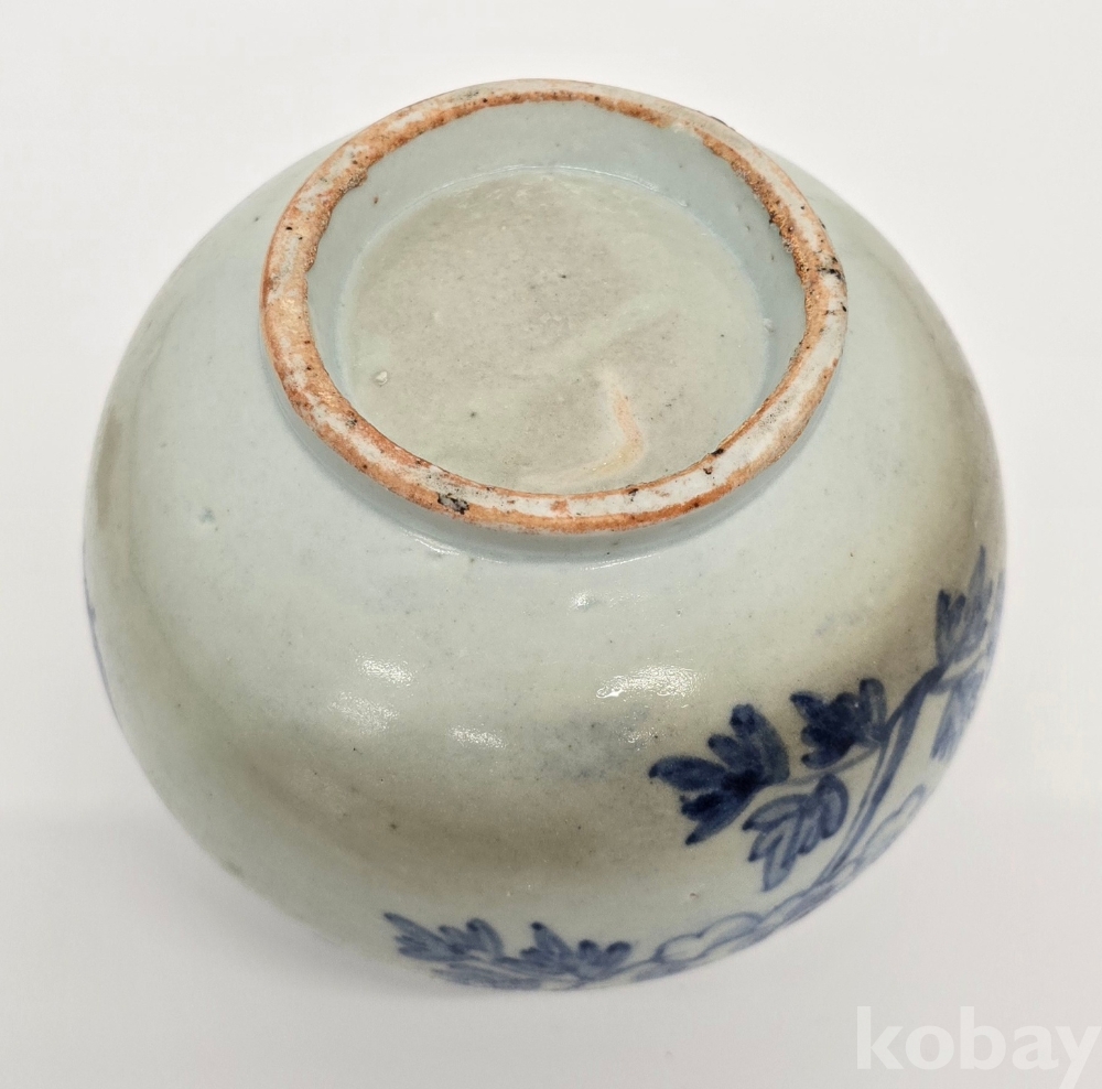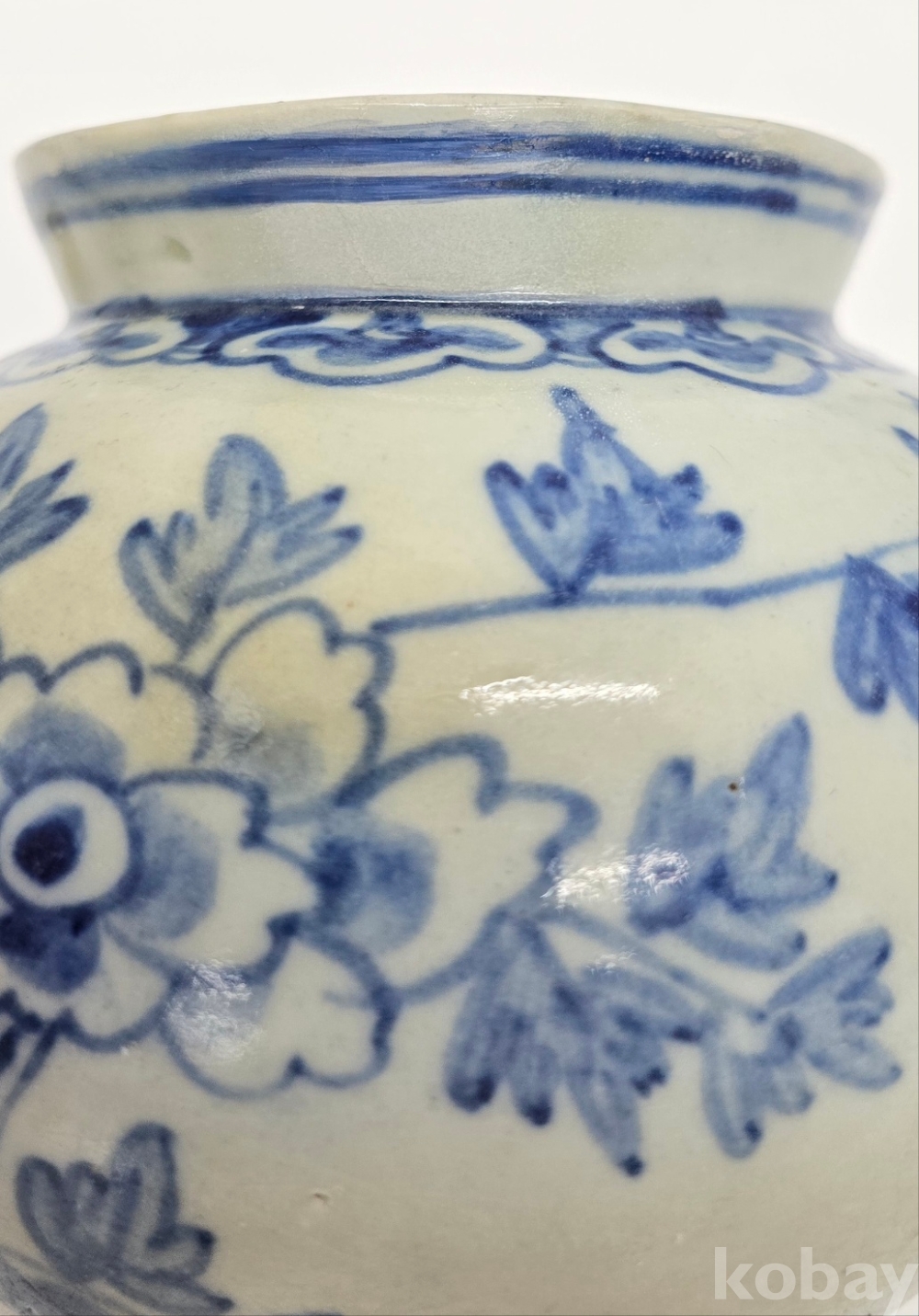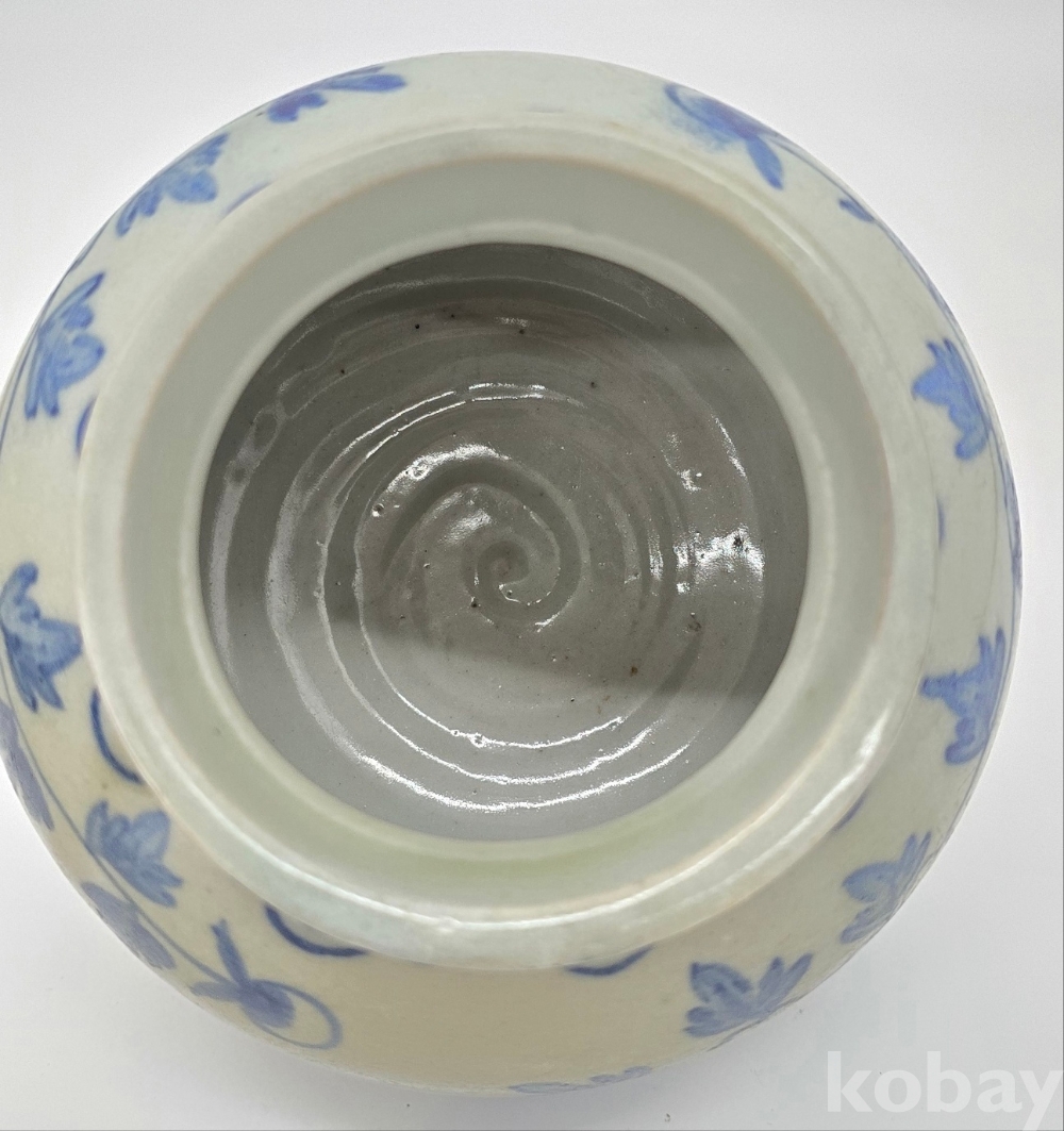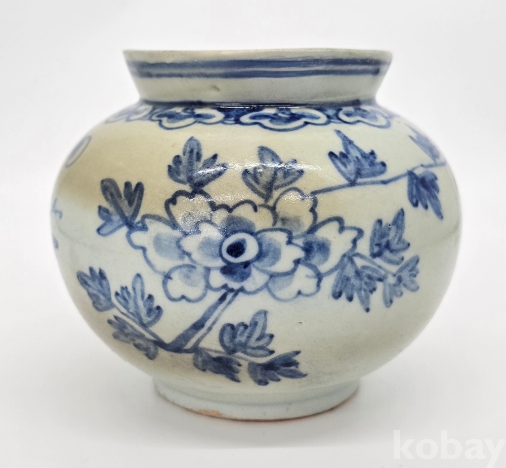나비도 2마리가 시문되어 있으며, 어깨에는 여의두문이 그리고 구연부에는 청화로 분원띠를 2줄 감았습니다.