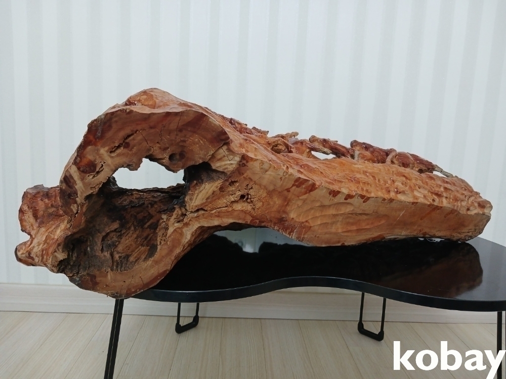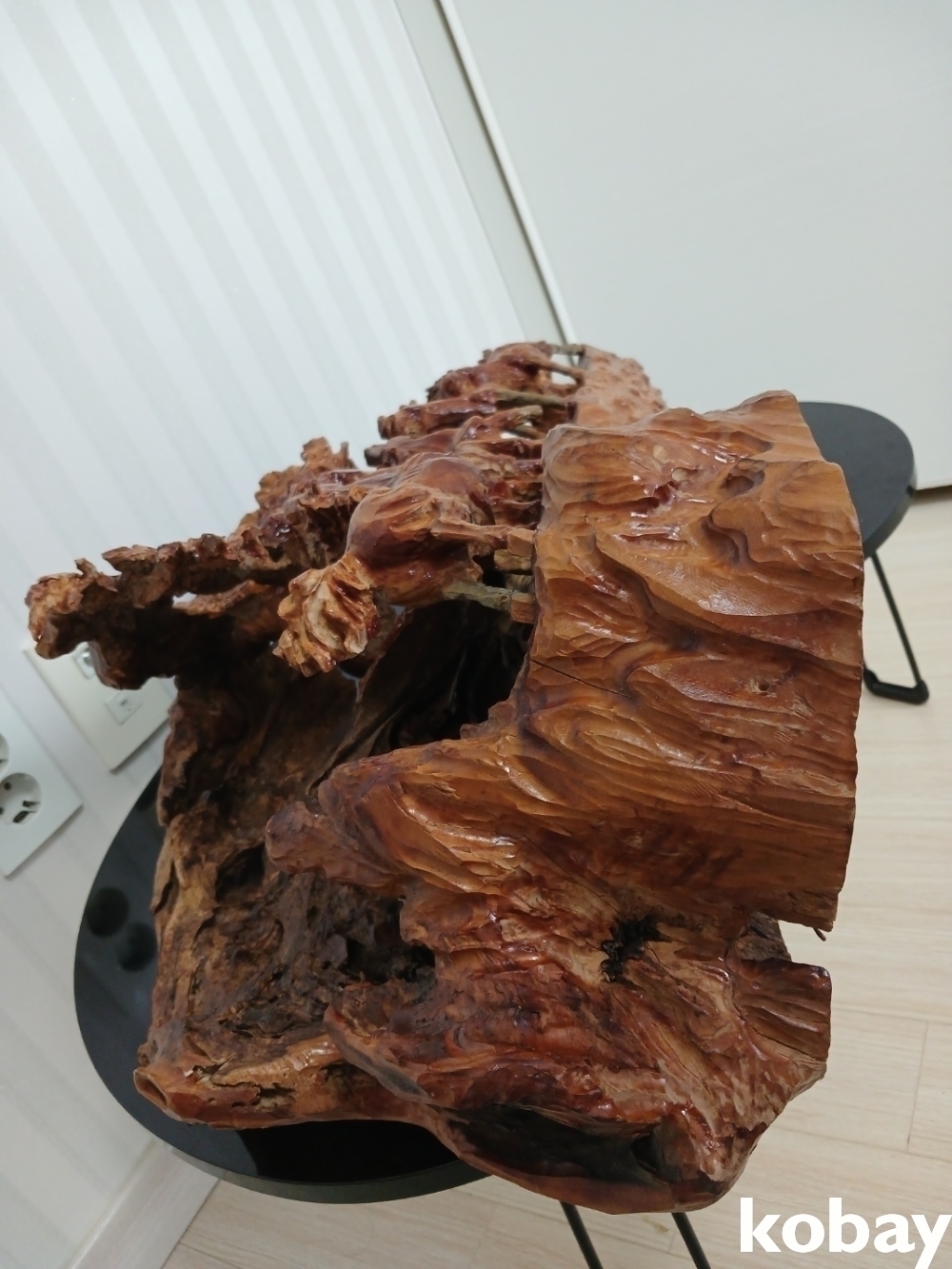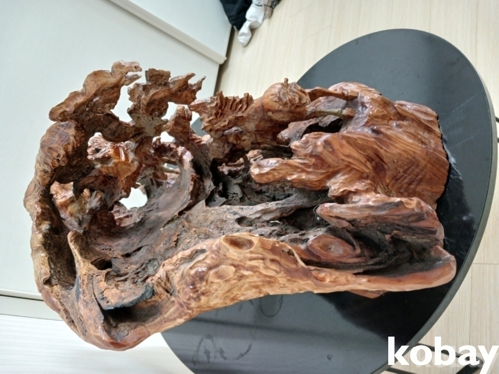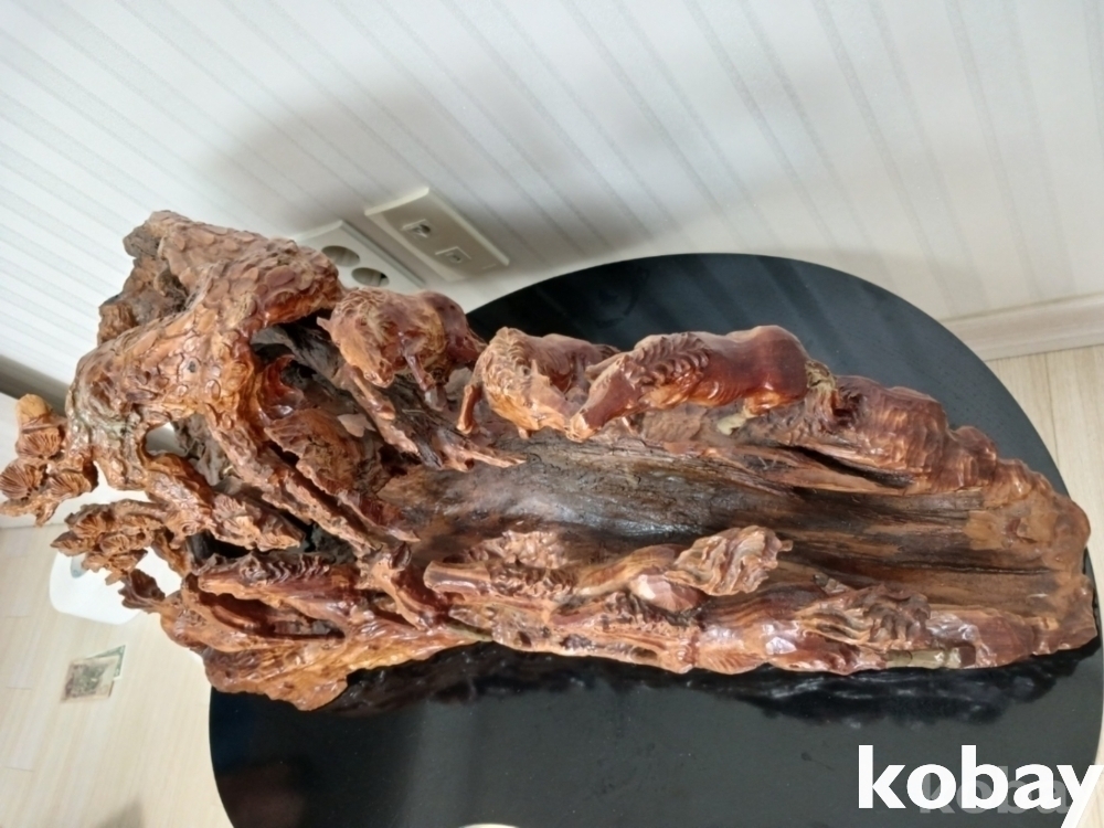 괴목의 통나무에 8마리의 말을 다양한 모습으로 조각하여 표현한 공예품 입니다.