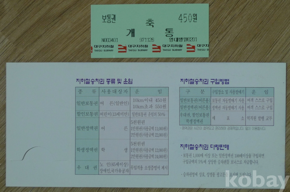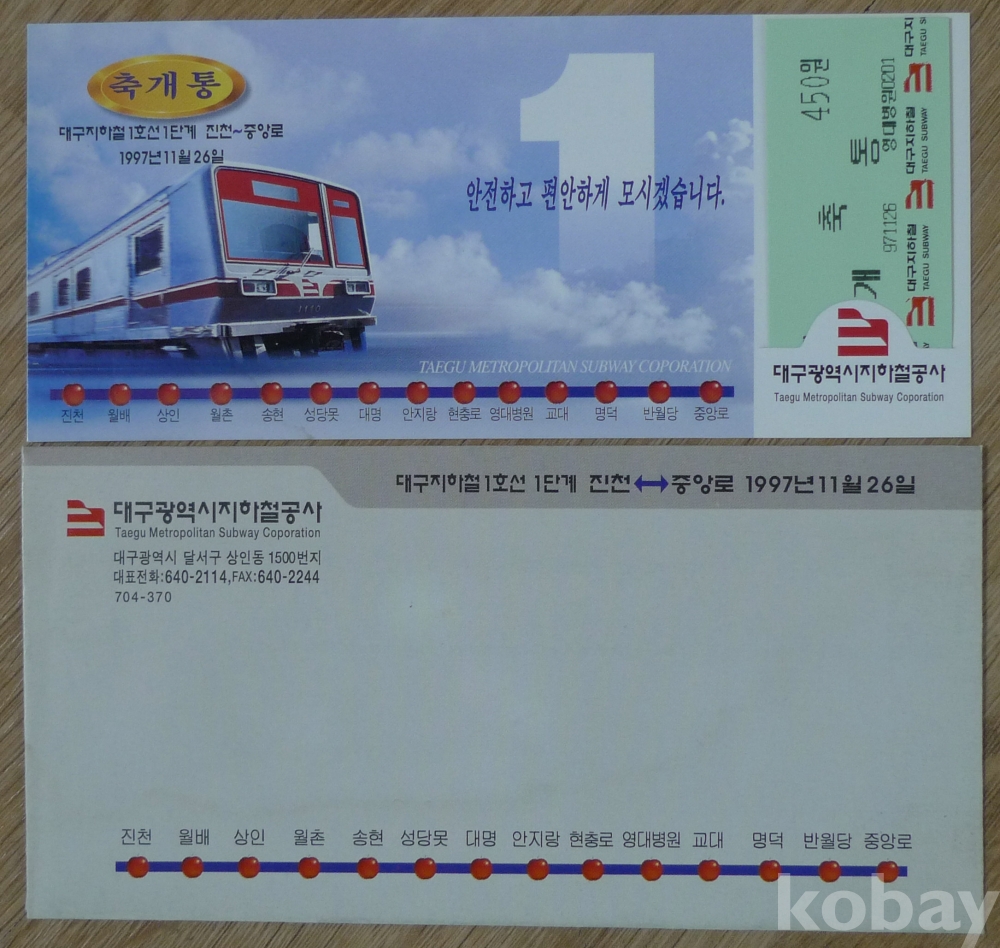 1997년 대구지하철 1호선 1단계 진천 - 중앙로 개통 기념 승차권