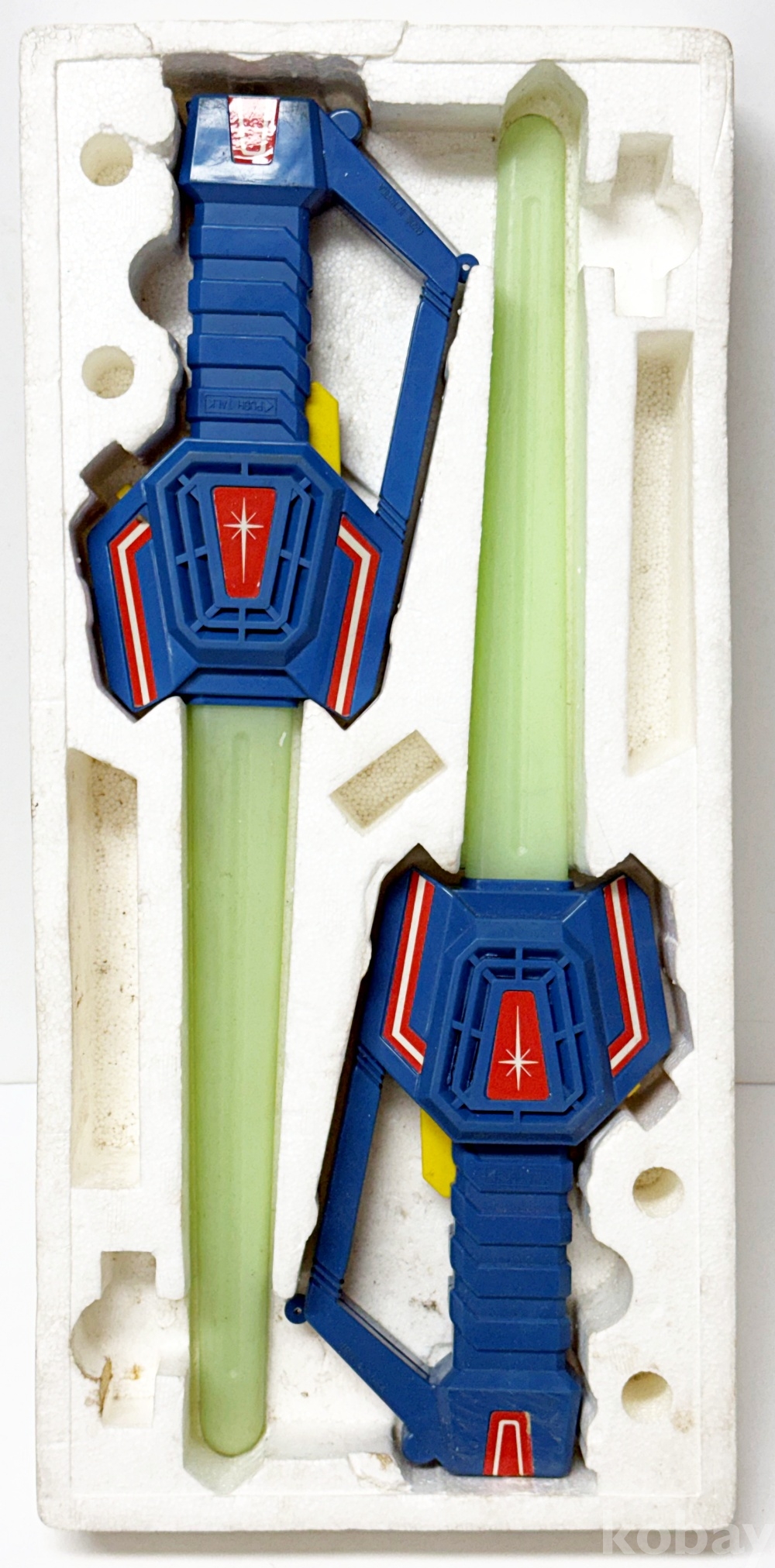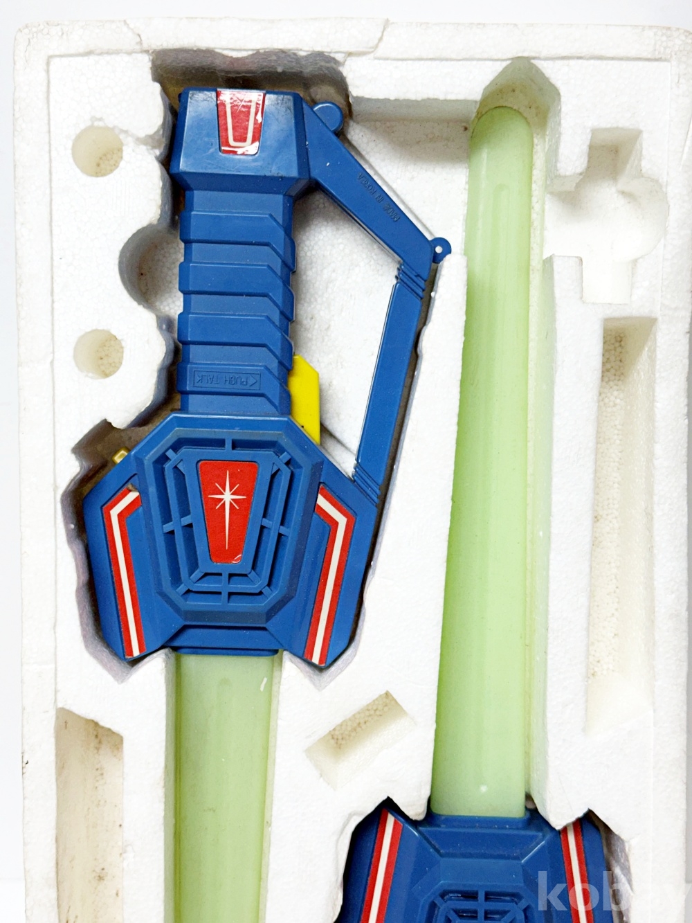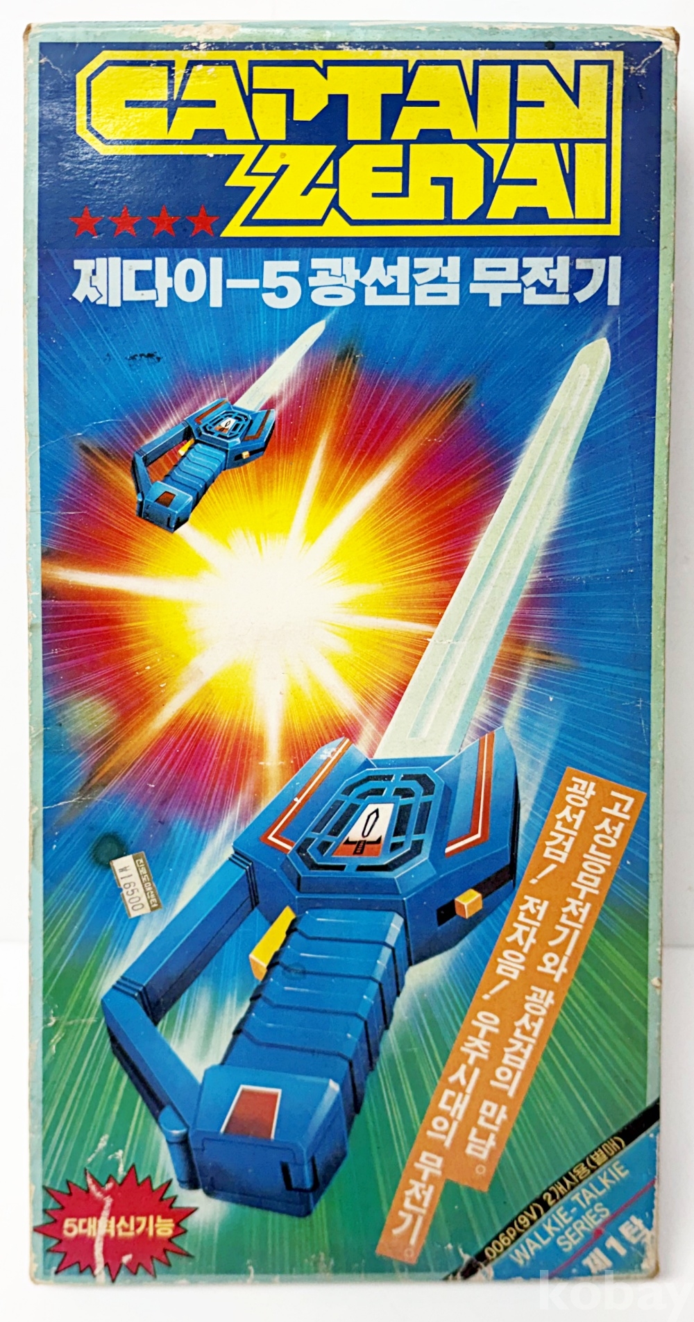 상품설명 | 신승통상에서 발매한 '제다이 5 광선검 무전기' 고전완구이다. 실제 무전기 기능이 포함된 워키토키 시리즈의 일부로, 스타워즈의 광선검을 모티브로 제작되었다. | ||