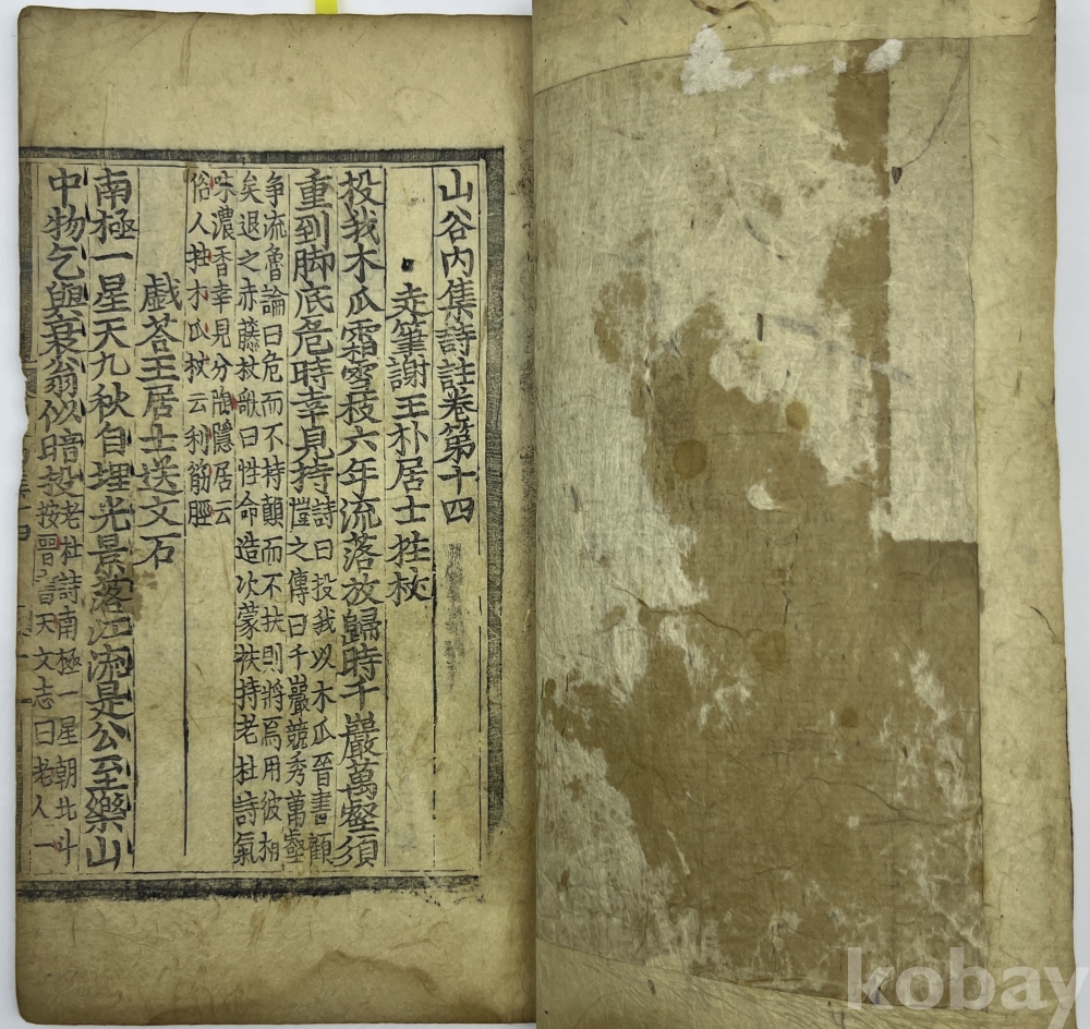 물 품 명 | 대흑구 목판본 [산곡내집시주(山谷內集詩註)] 권14 1책 영본(零本) | |||||