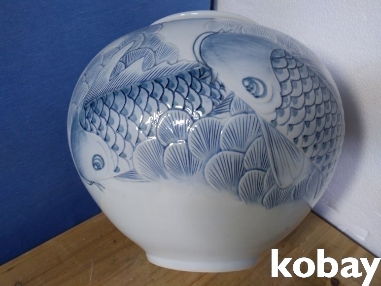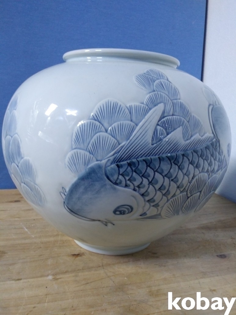 물고기 문양이 양각으로 있는 도자기 입니다.