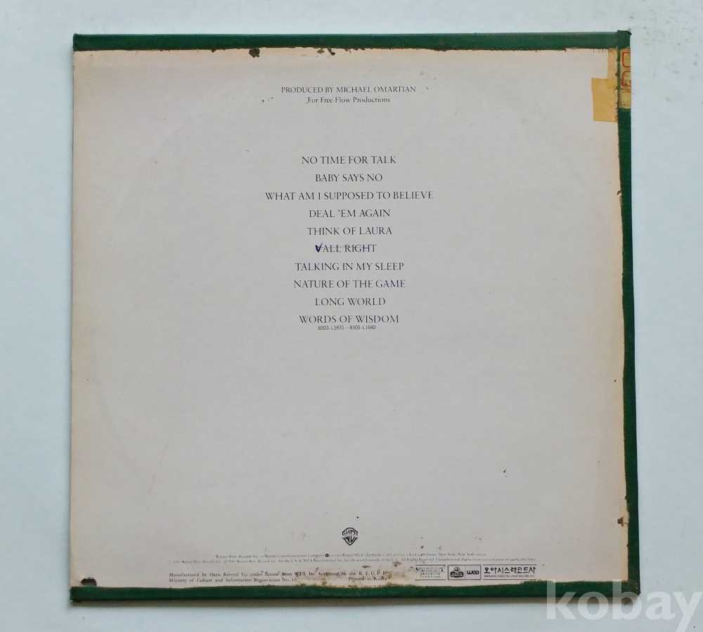| 자켓상태 | EX : 약간의 마모, 모서리 찢김 존재 | 음반상태 | NM : 개봉했으나 미사용급, 스크래치 없음 | 발매정보 | 알수없음 | 가사지여부 | 유 |