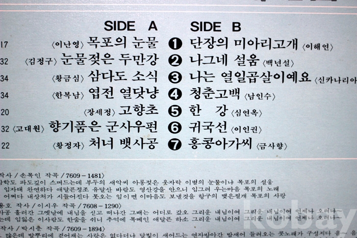 수록 곡 목은 사진을 참조하시기 바랍니다