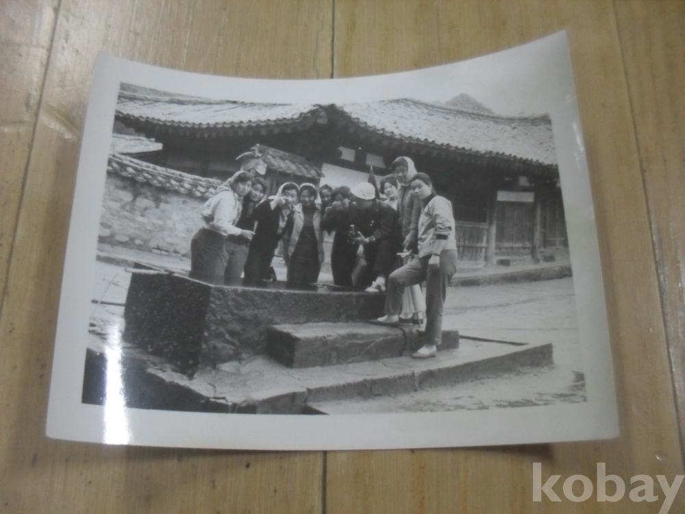 1302h)60년대 사찰에서 약수 마시는 여성들 사진.